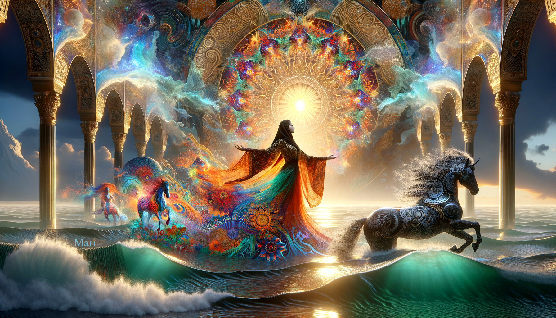 Divine Awakening in Ethereal Seascape