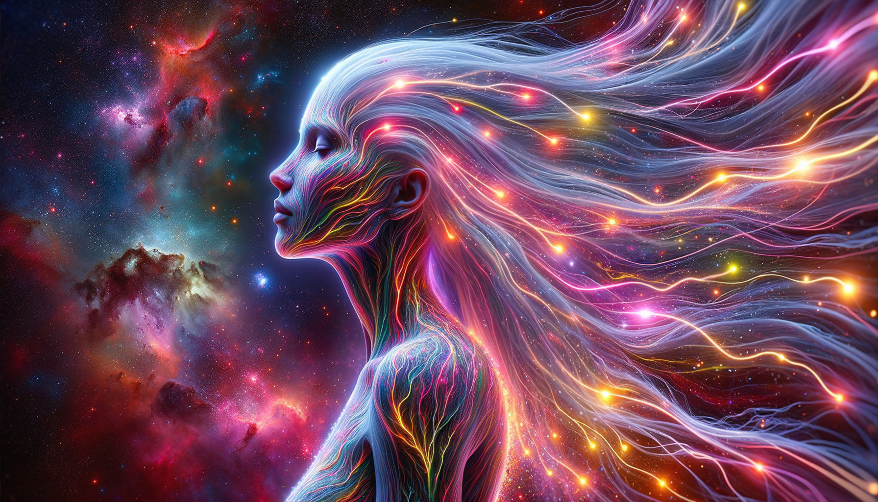 Celestial Fusion: Nebula Woman Portrait