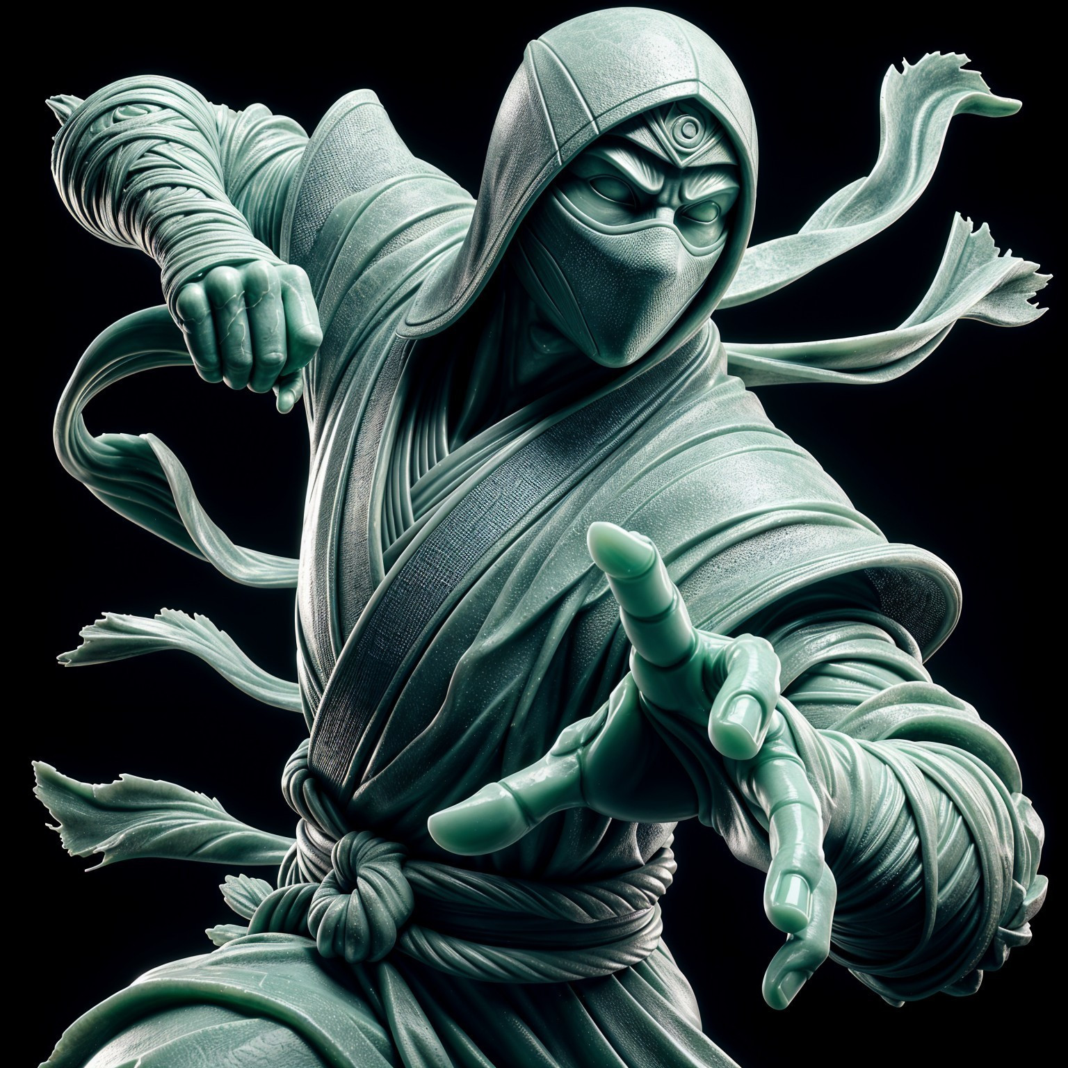 Dynamic Ninja-Swallow in Stealthy Action Pose