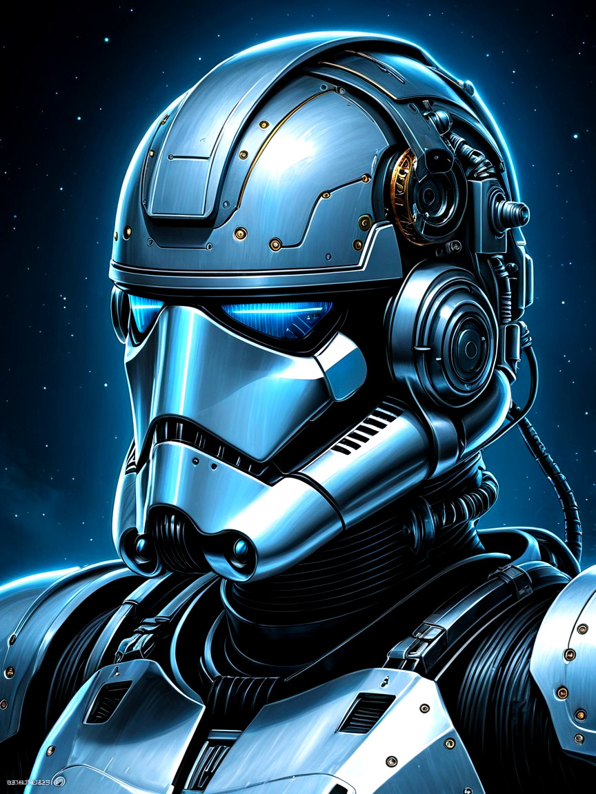 Cosmic Odyssey: Astronaut, Robot, and Stormtrooper in Space