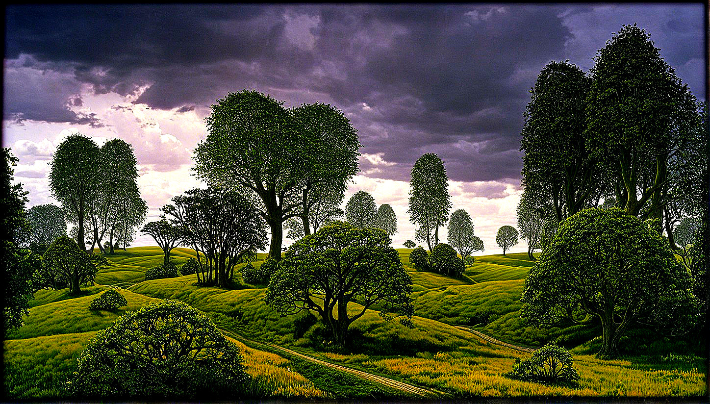 Stunning Field Landscape Under Dramatic Sky With Rolling Storm Clouds