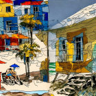 Vibrant Abstract Landscape with Colorful Houses