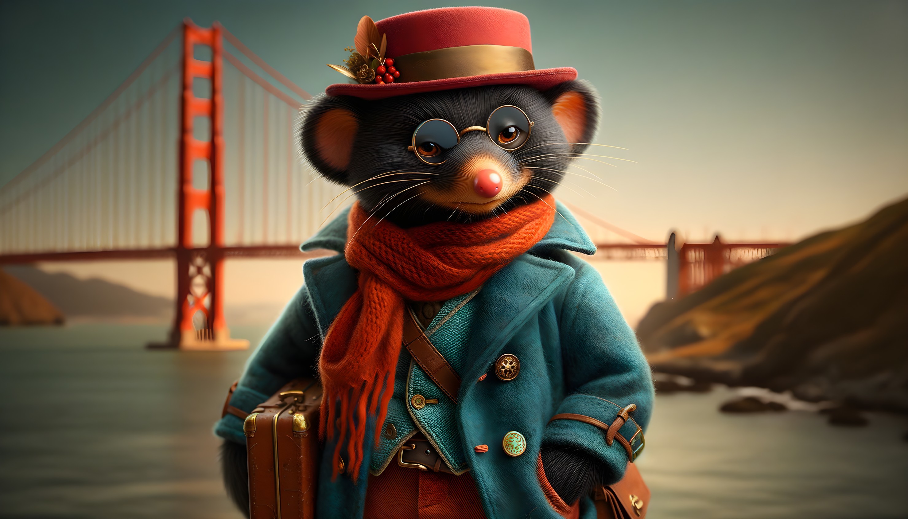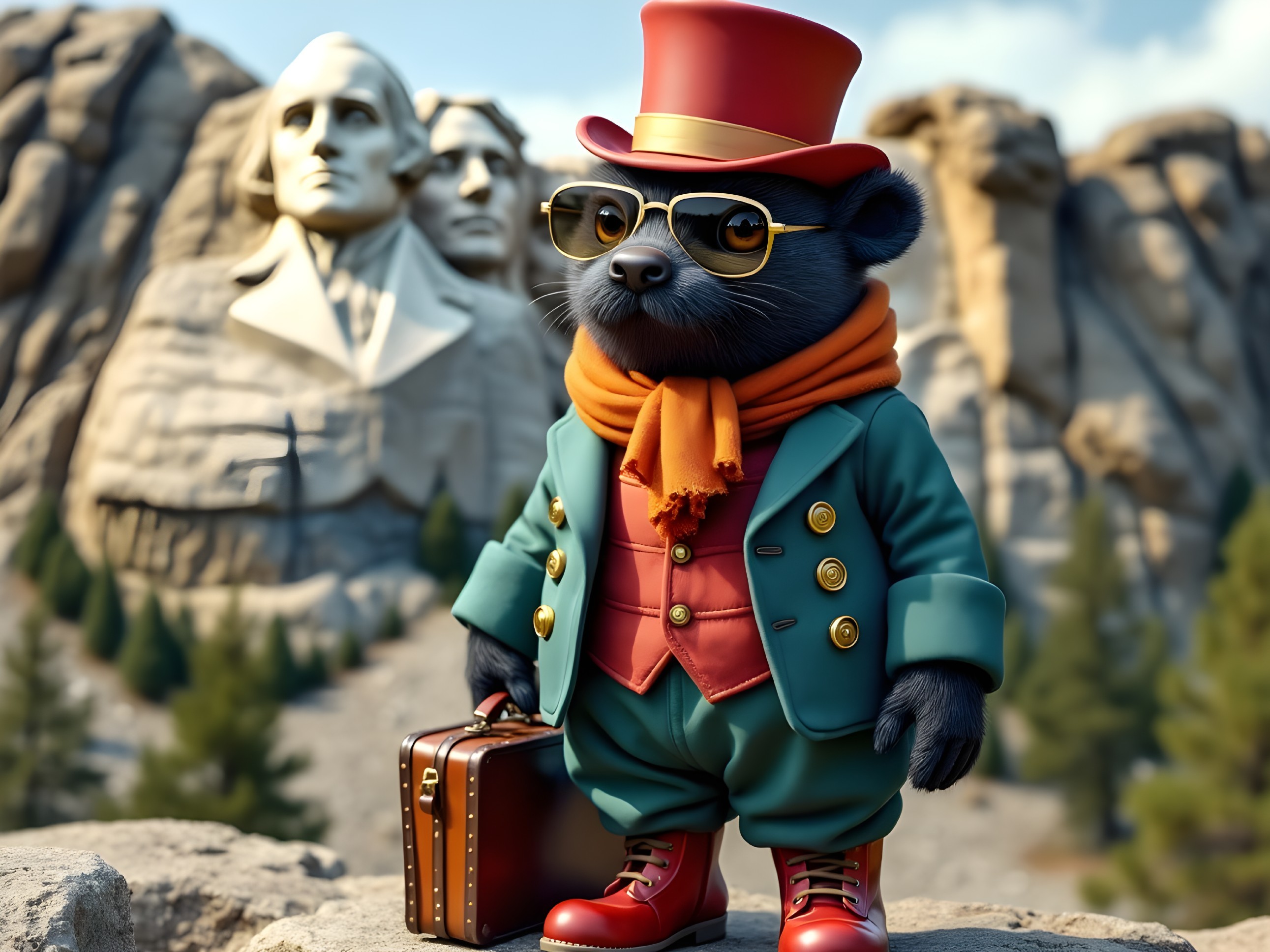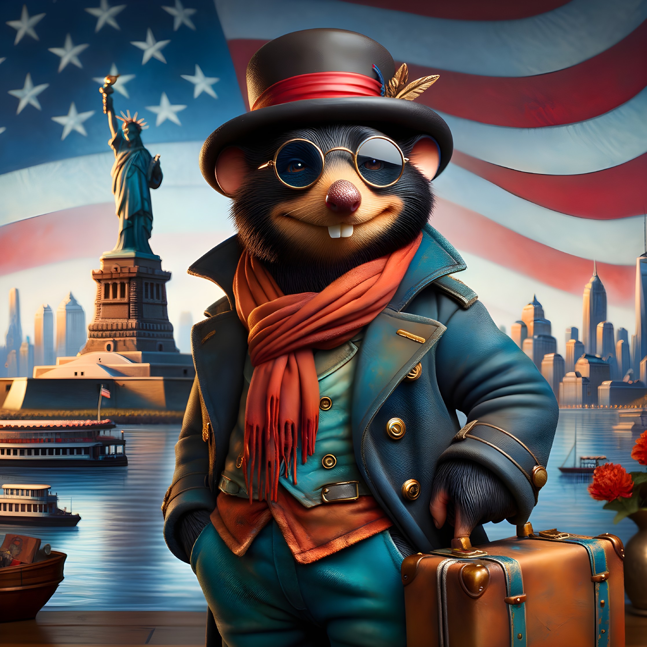 Molli the Charming Mole with Suitcase and der Skyline of New York