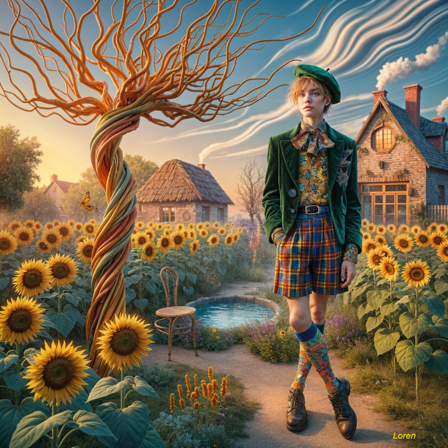 Whimsical Beauty in a Sunflower Dreamscape