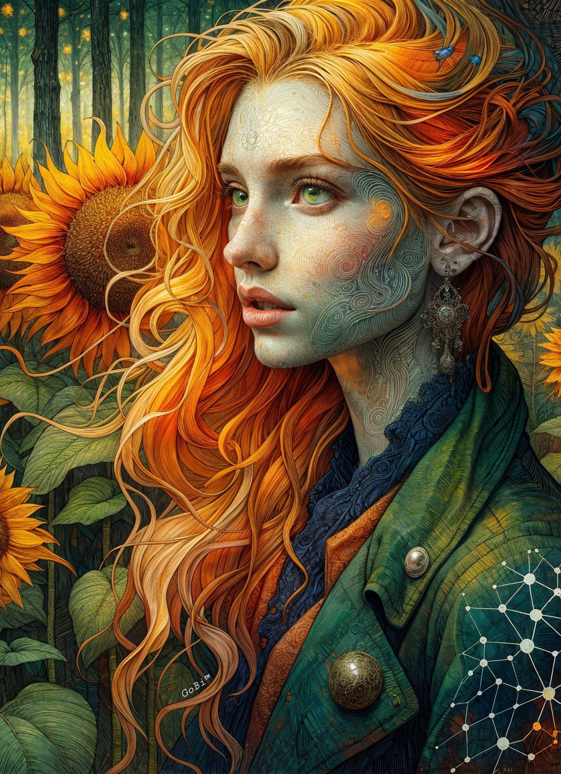 Turquoise Hair in a Sunflower Dream
