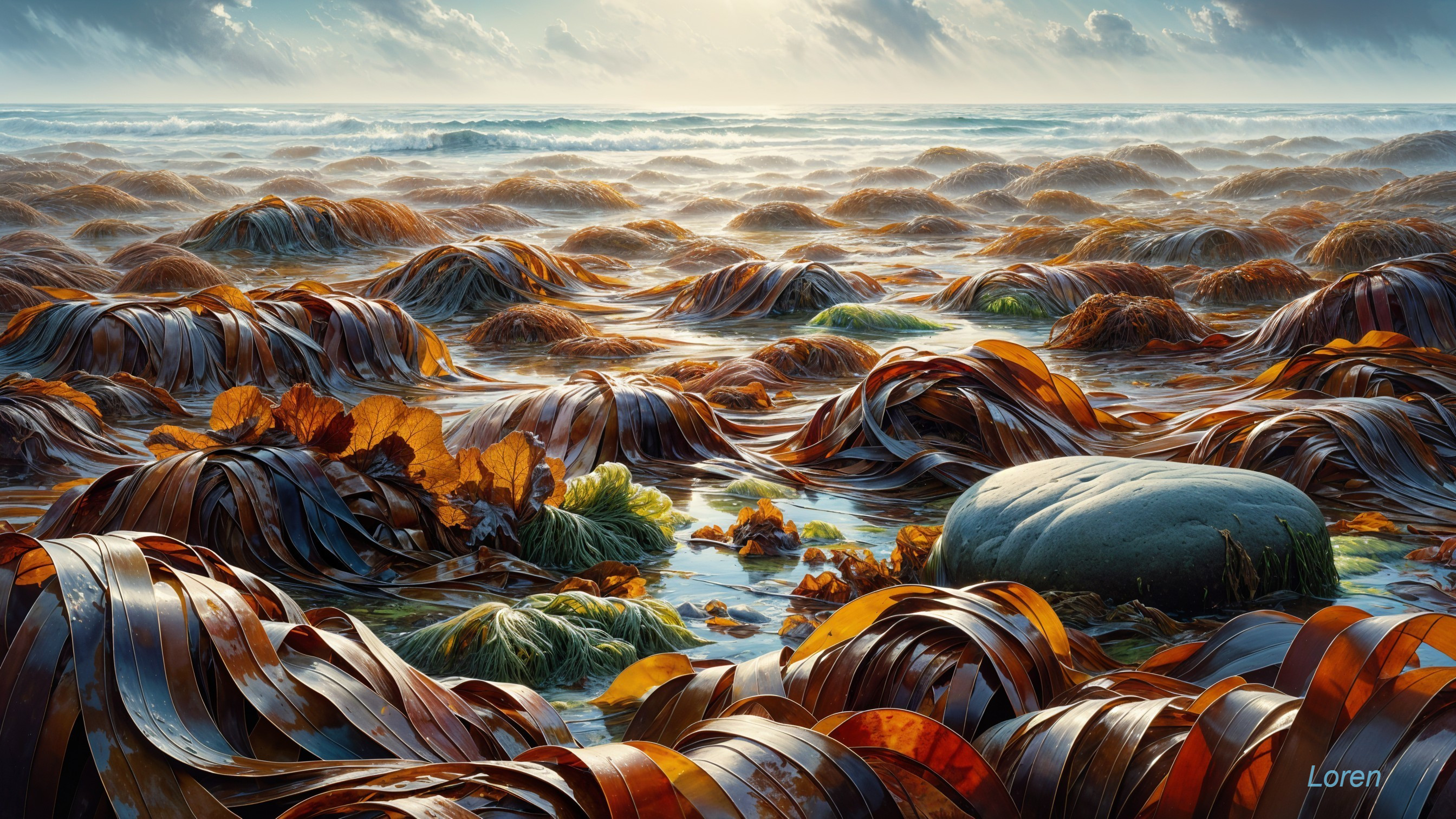 Serene Coastal Beauty with Vibrant Seaweed