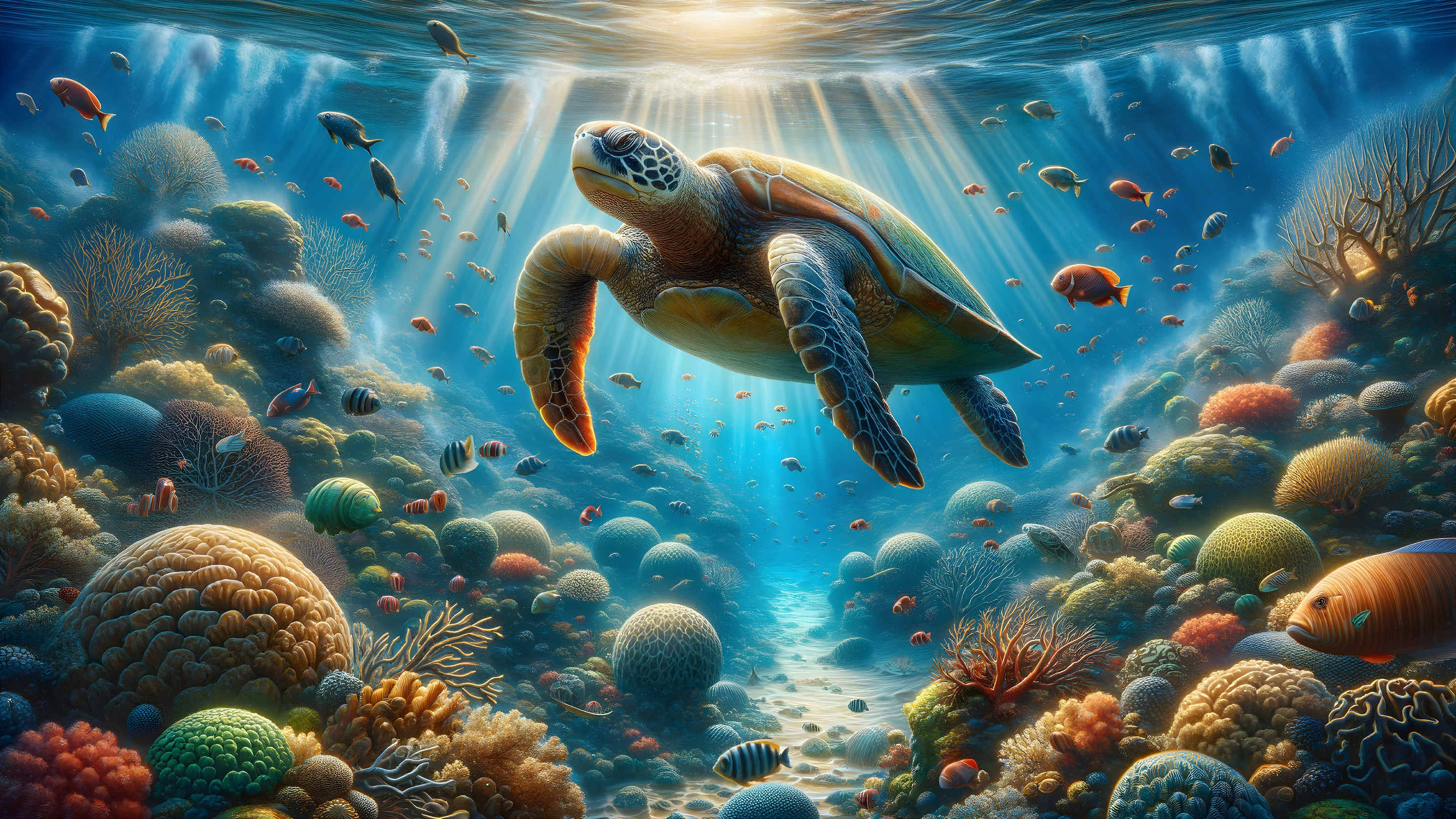 Colorful Iguana and Lively Turtle in a Lively Underwater World