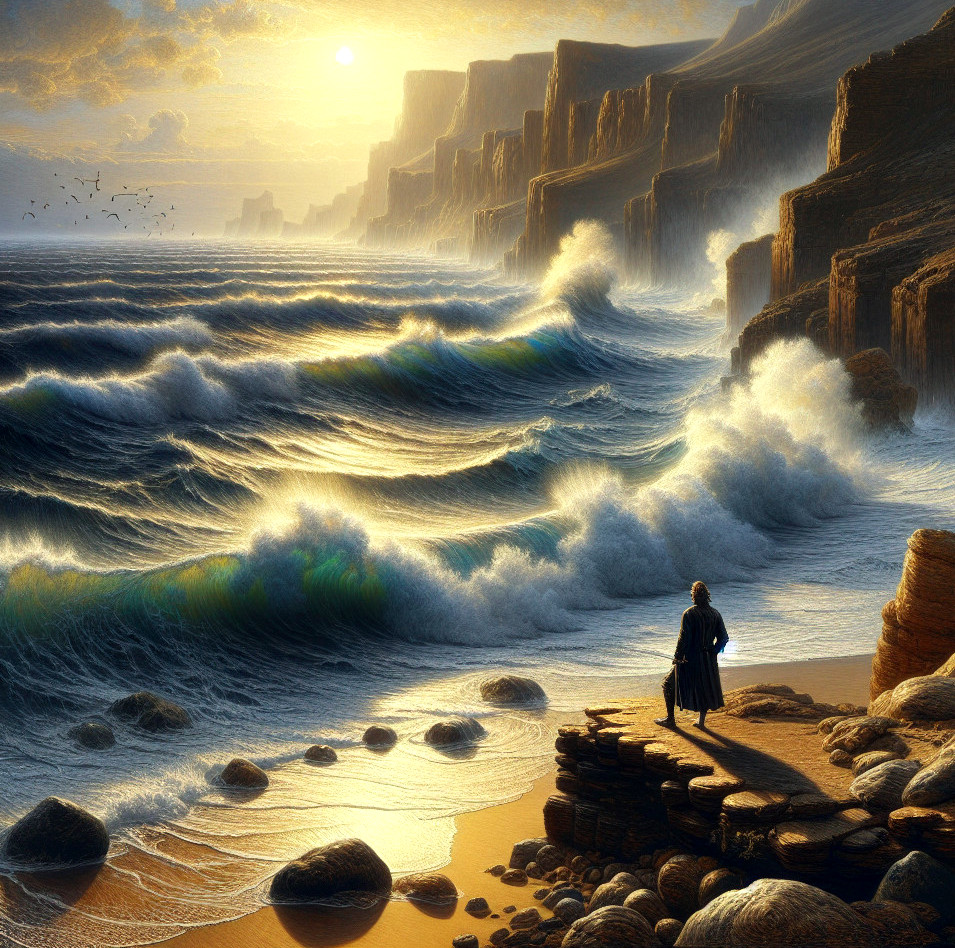 Serene Arctic Dawn with Polar Bear and Glaciers