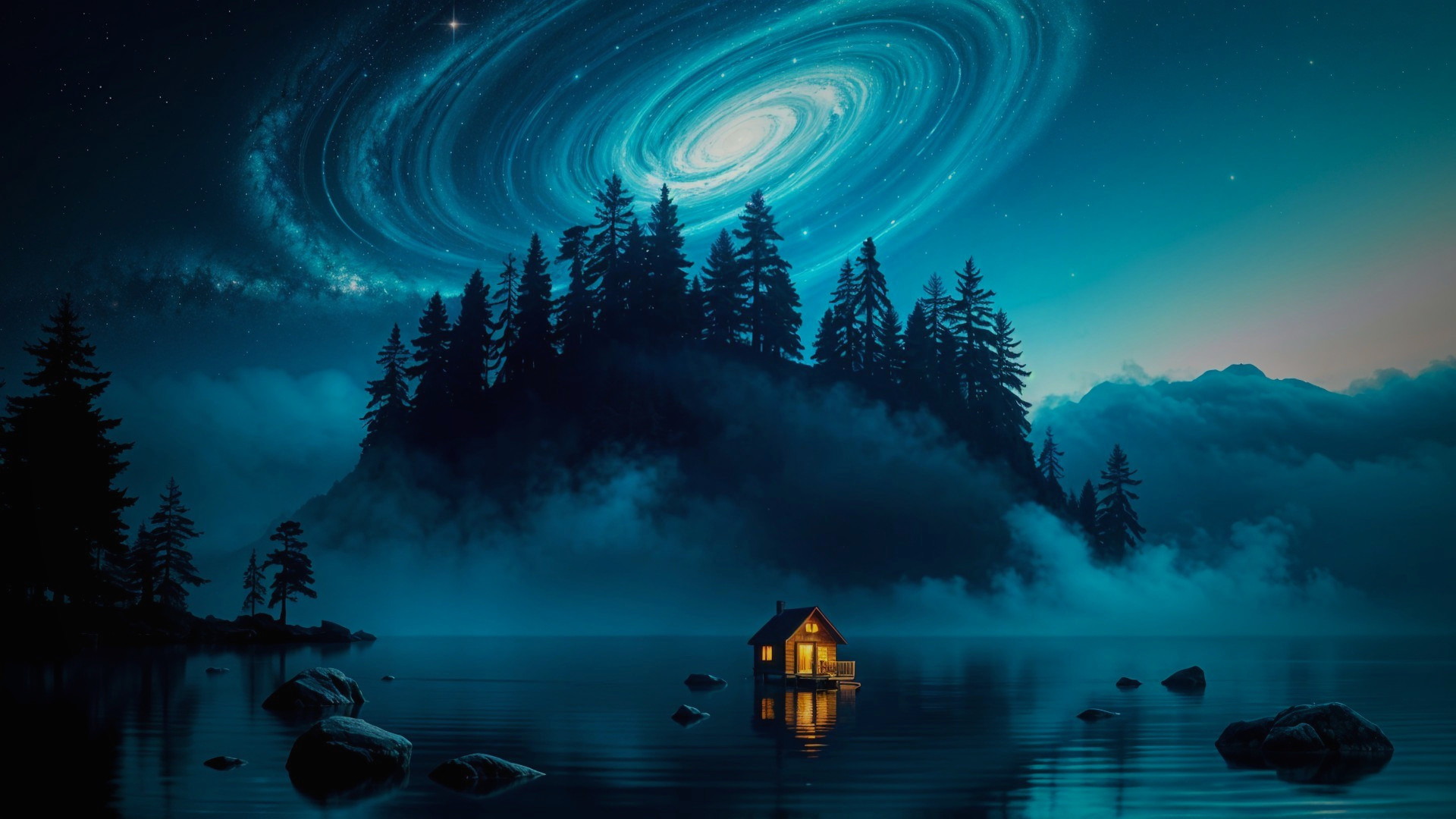 Galactic Serenity Over Ocean Reflections