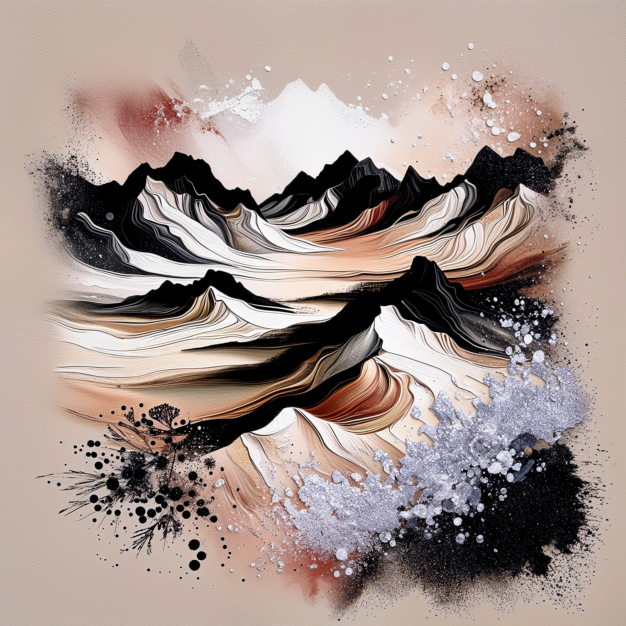 Intricate Black and White Mountain Landscape