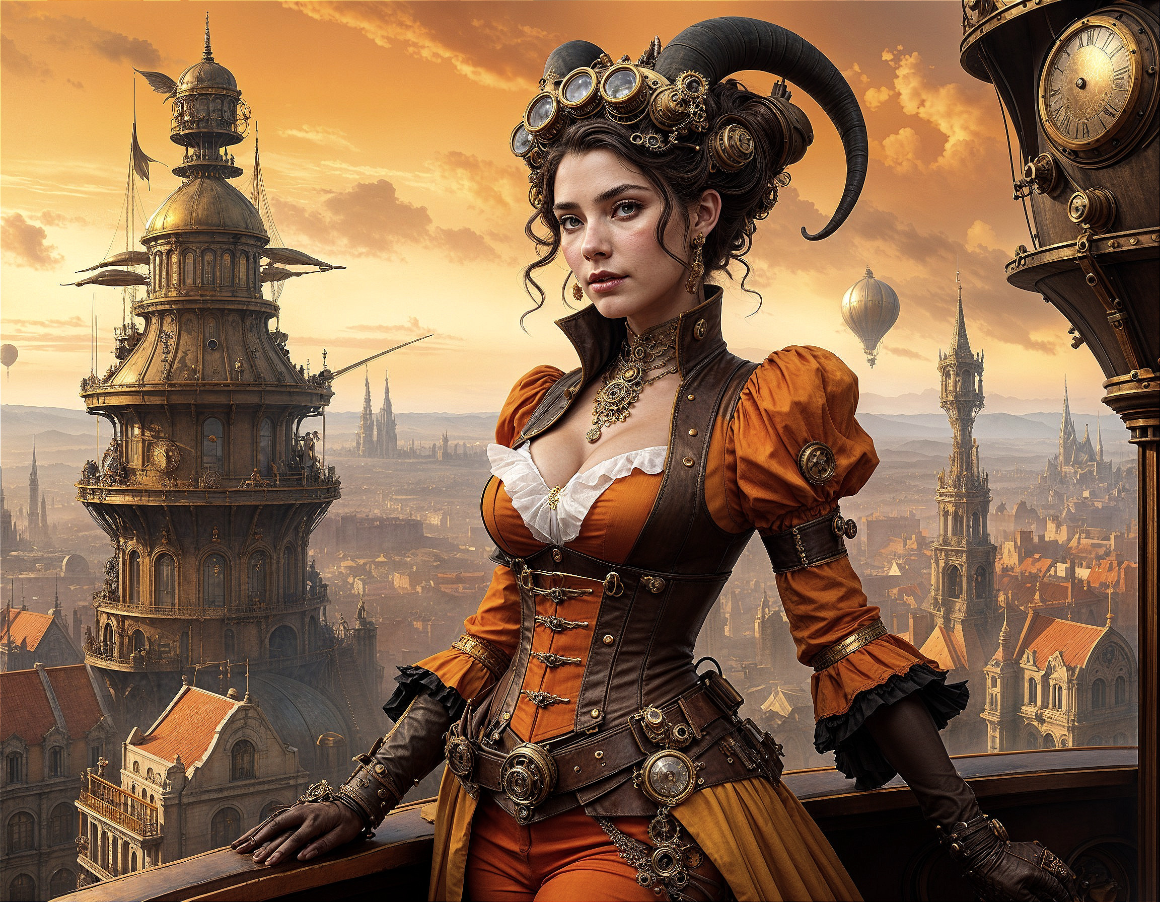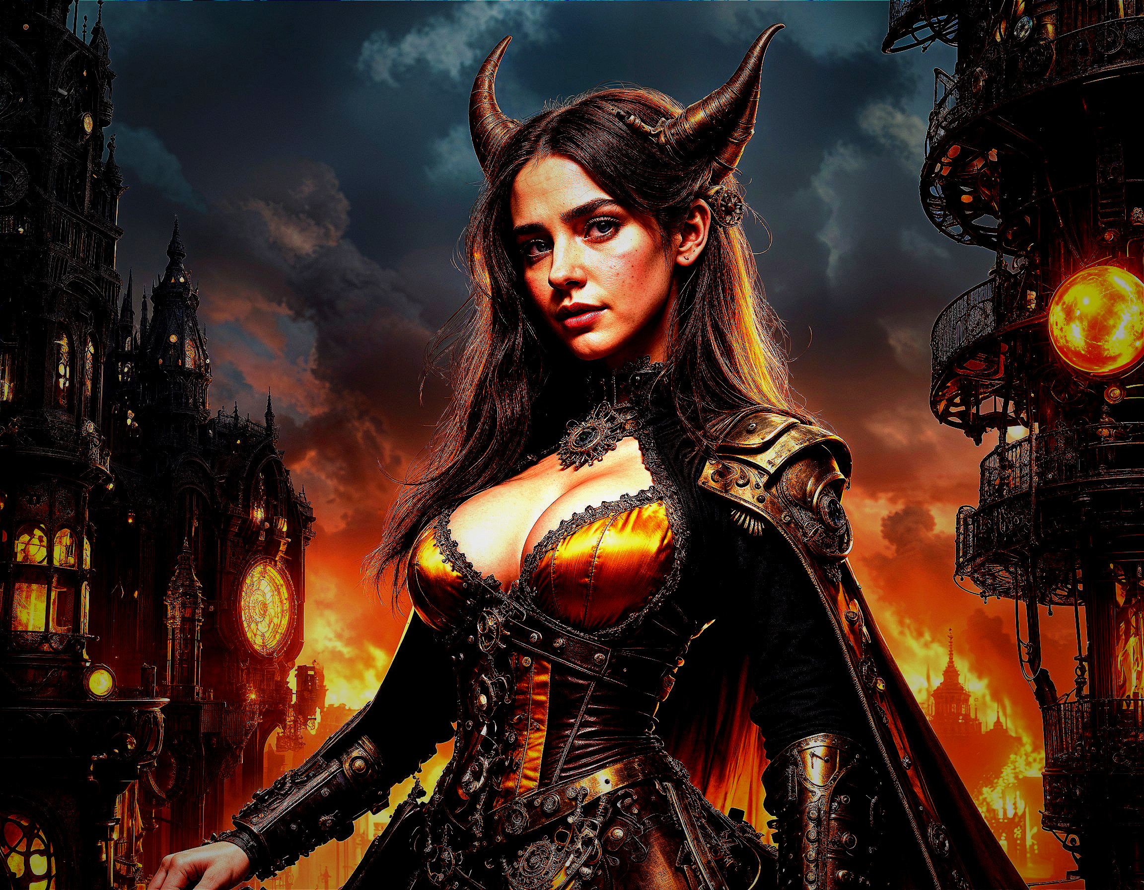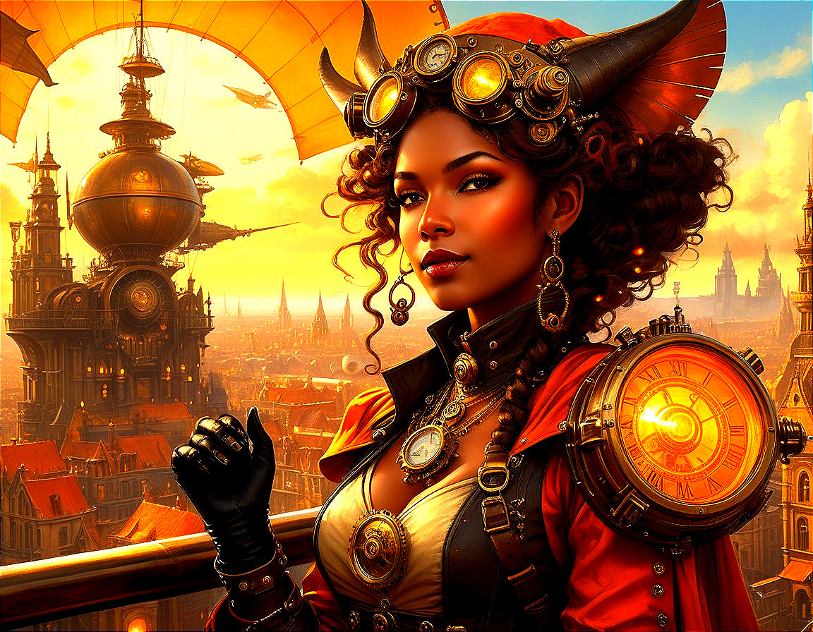 Enchanting Steampunk Sorceress in Firelight