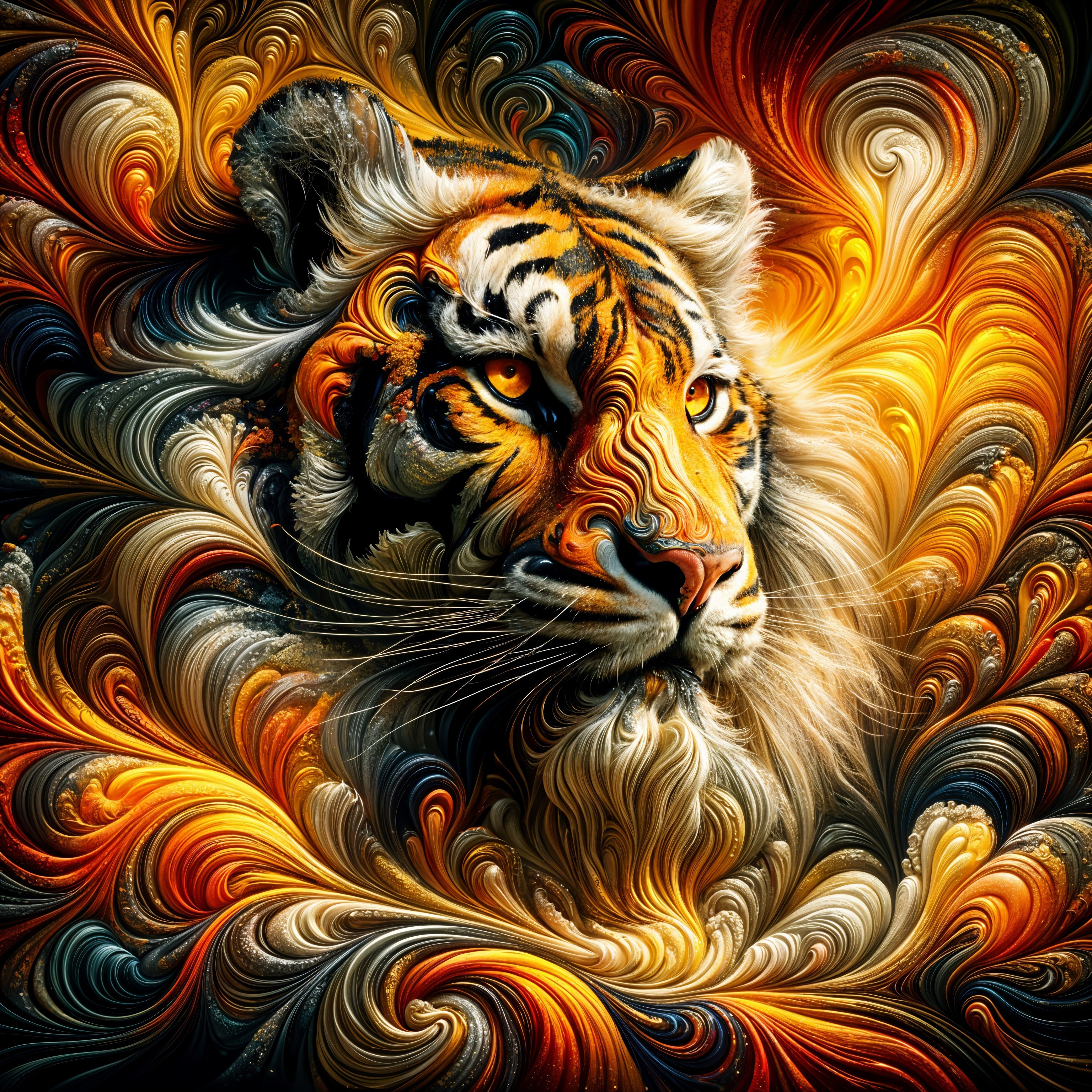 Vibrant Cartoon Tiger in Rainbow Swirls