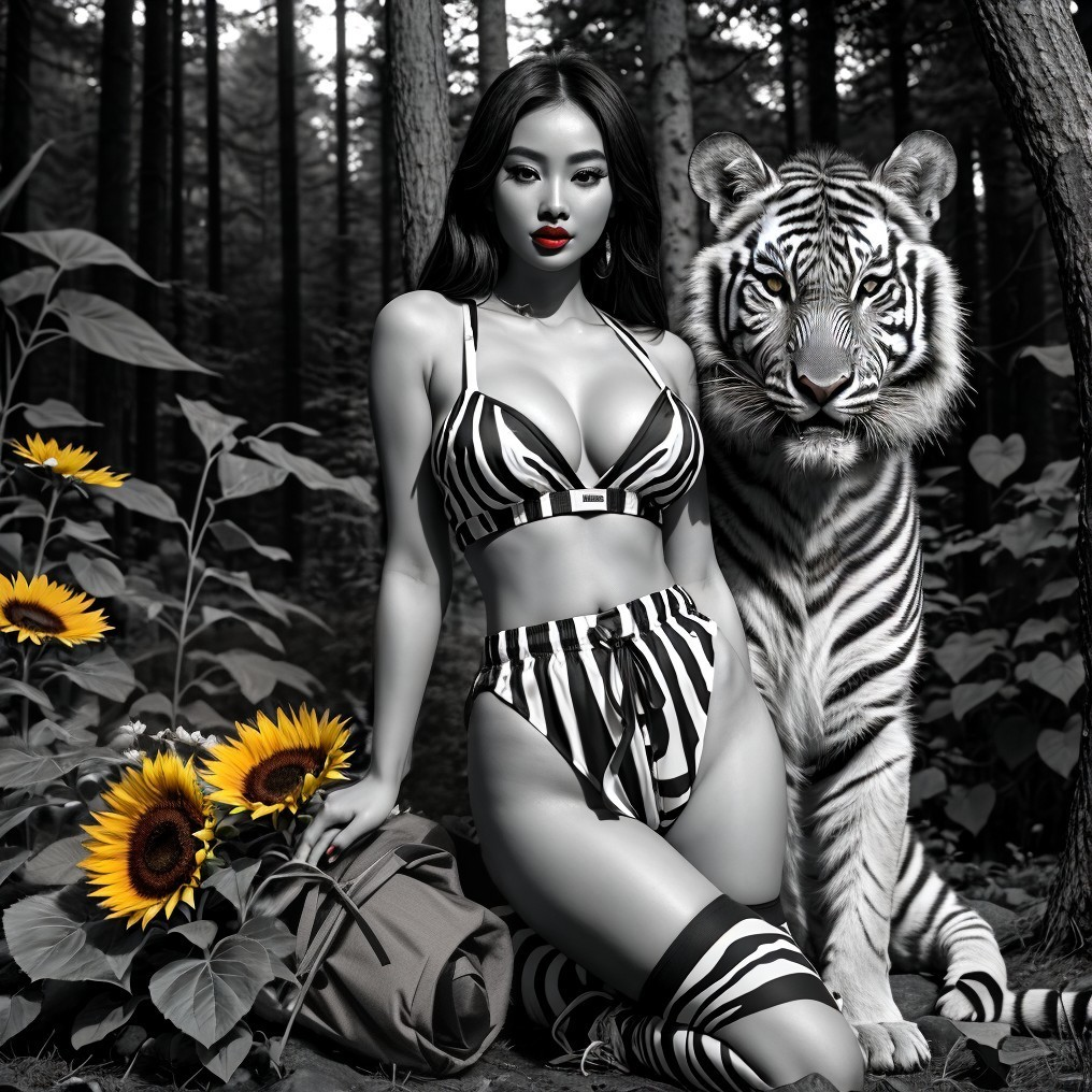 Moonlit Serenity: Girl and Tiger Dreamscape