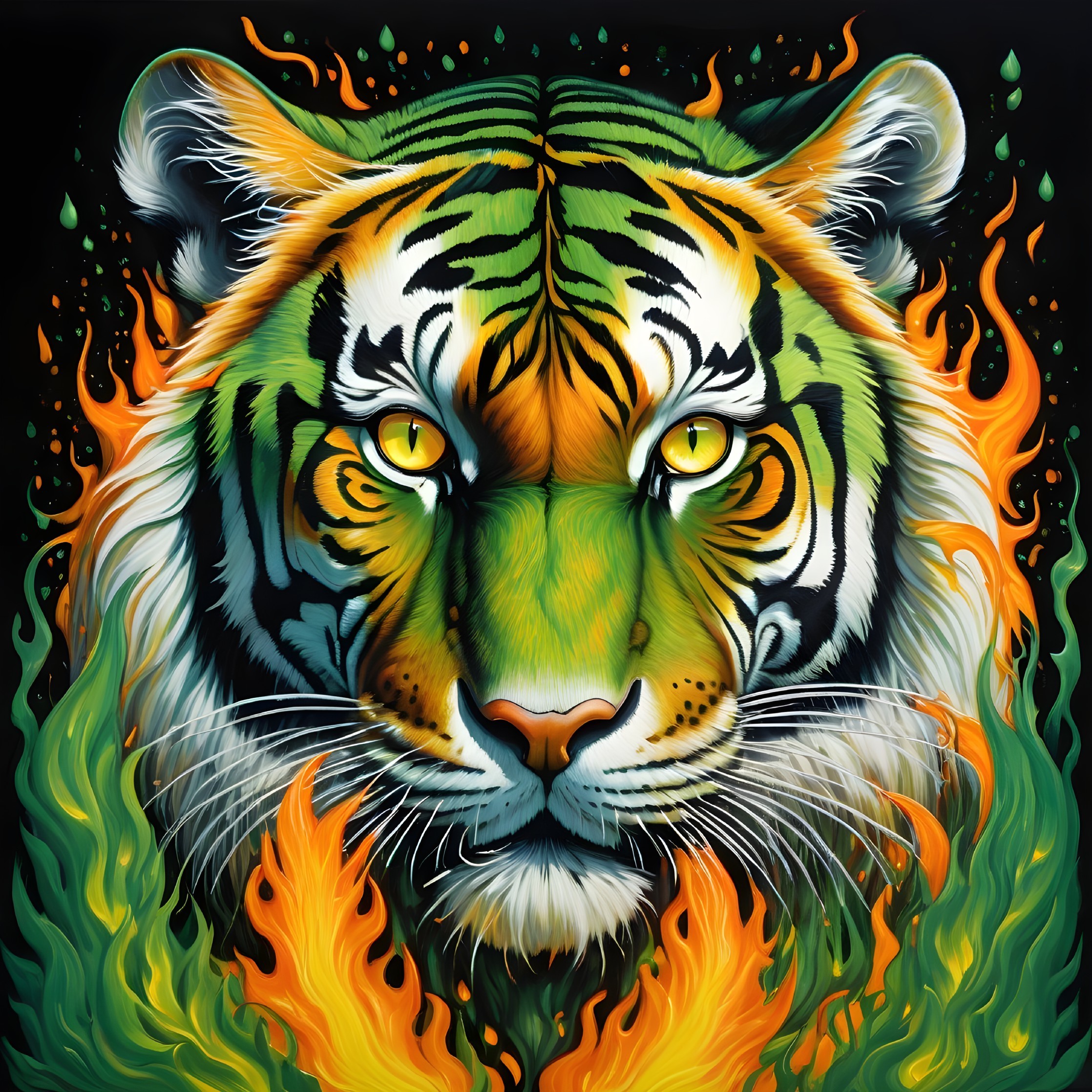 Flaming Tiger: Intense Eyes and Fierce Fire