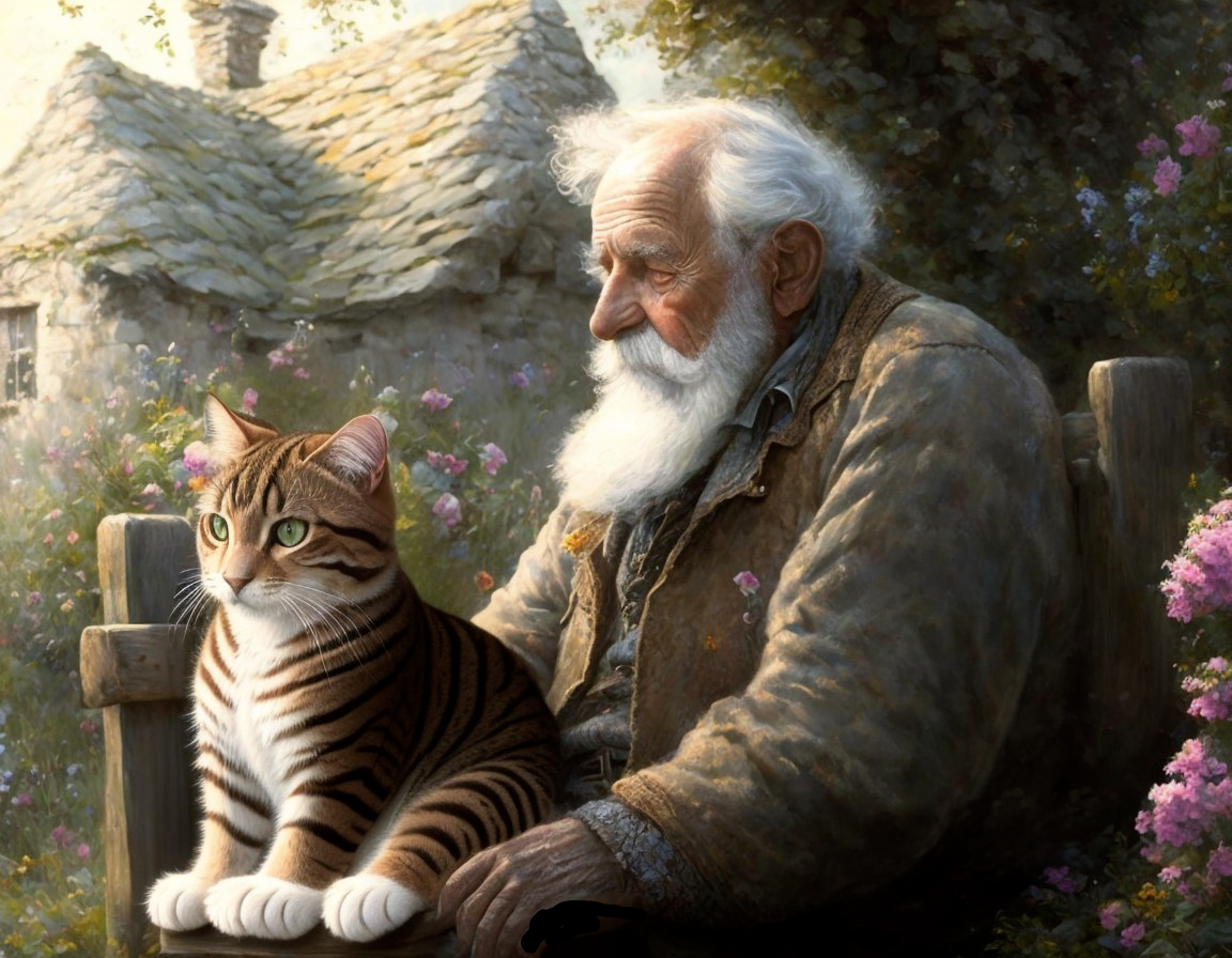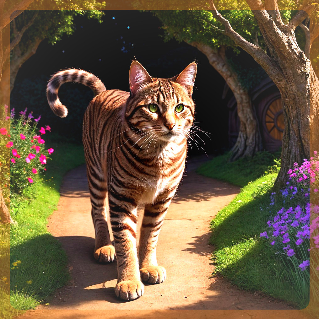 Grey-Brown Tabby Tomcat in Autumn Garden