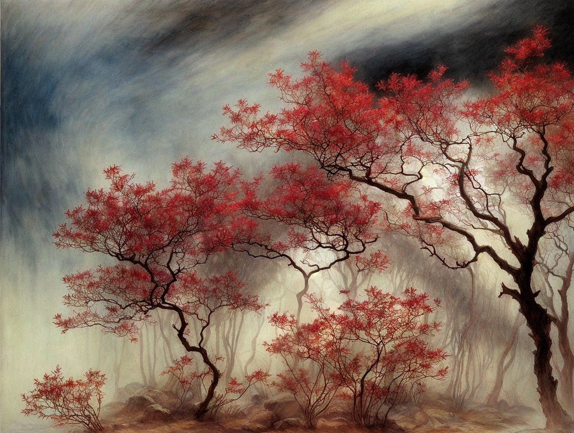 Misty Red Forestscape