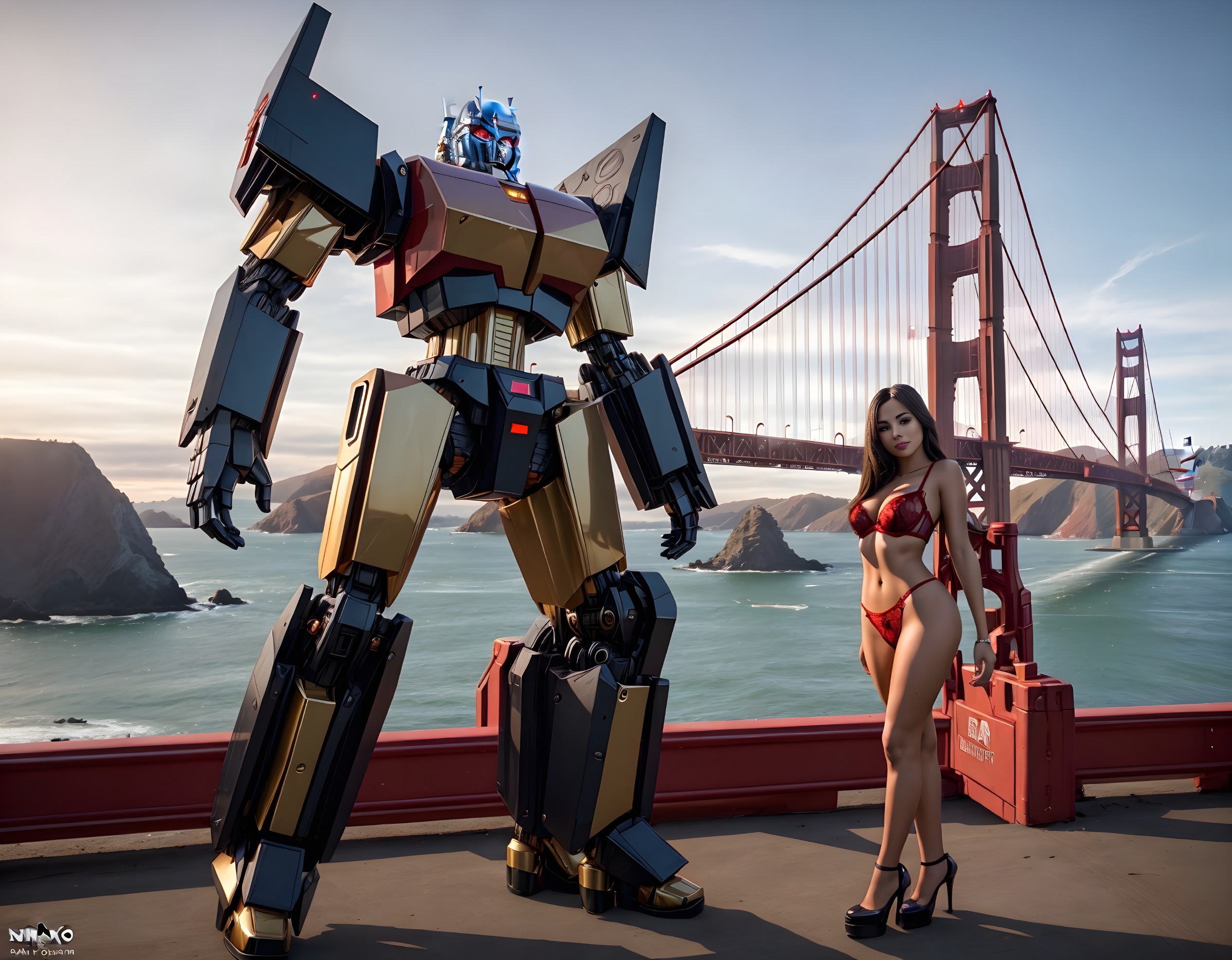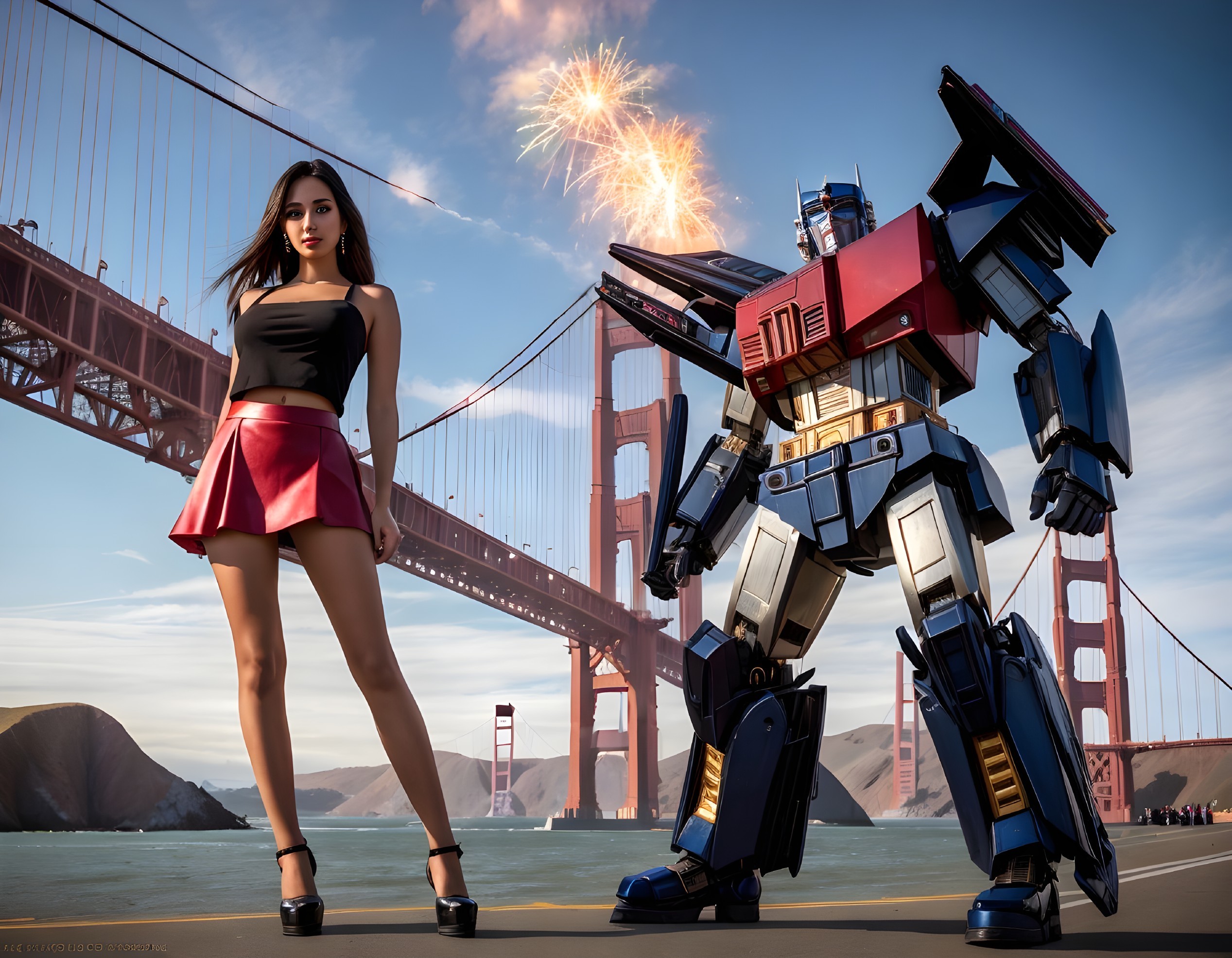 At the Golden Gate Bridge with Optimus Prime