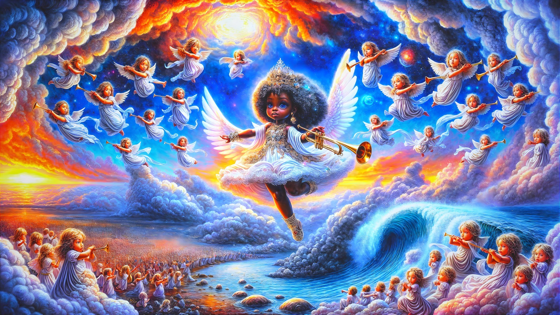 Angel Trumpets Hope in Fiery Ruins