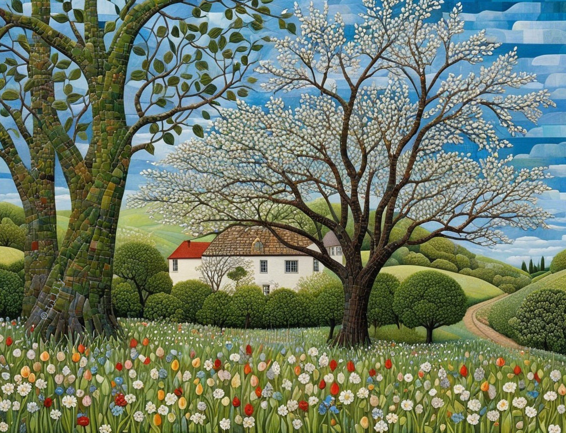 Joyful Serenity Among Tulips and Blossoms