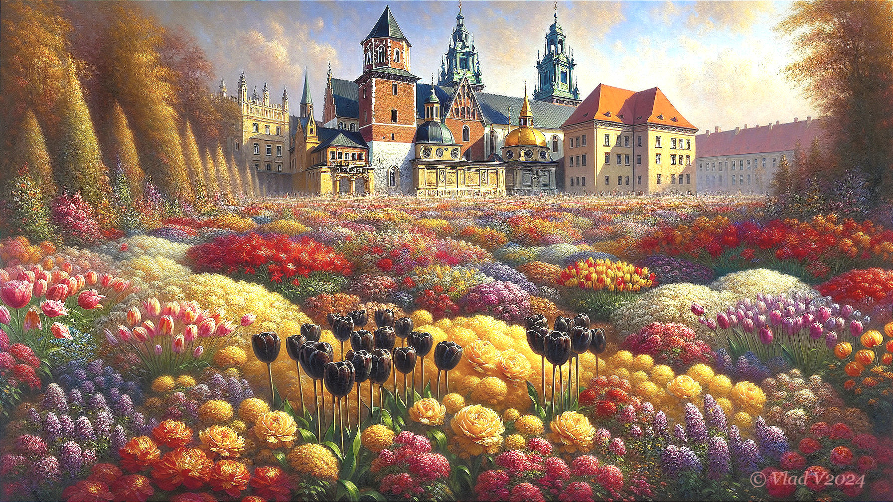 A Journey Through Tulips to a Castle