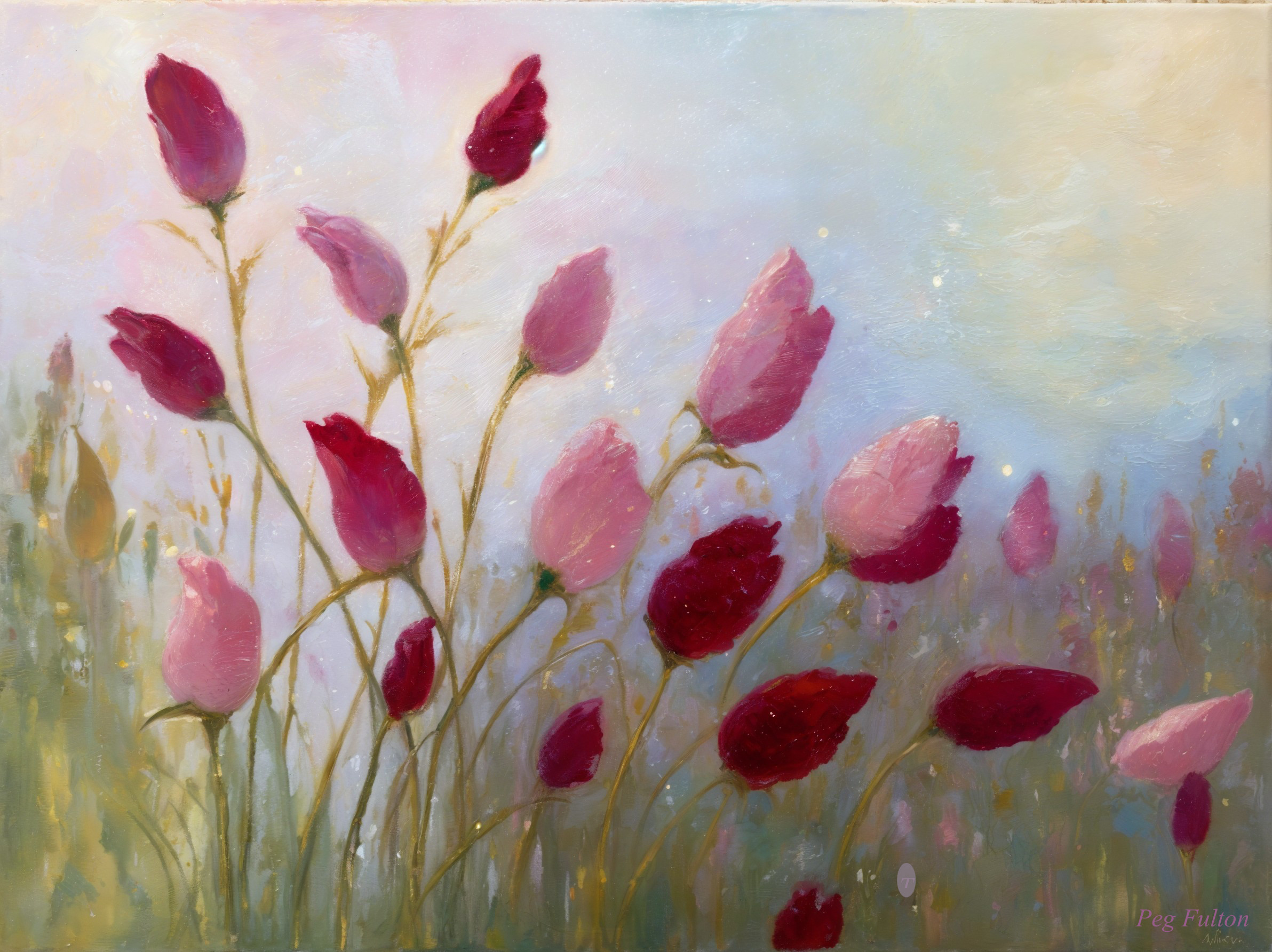 Impressionistic House Among Starry Tulips