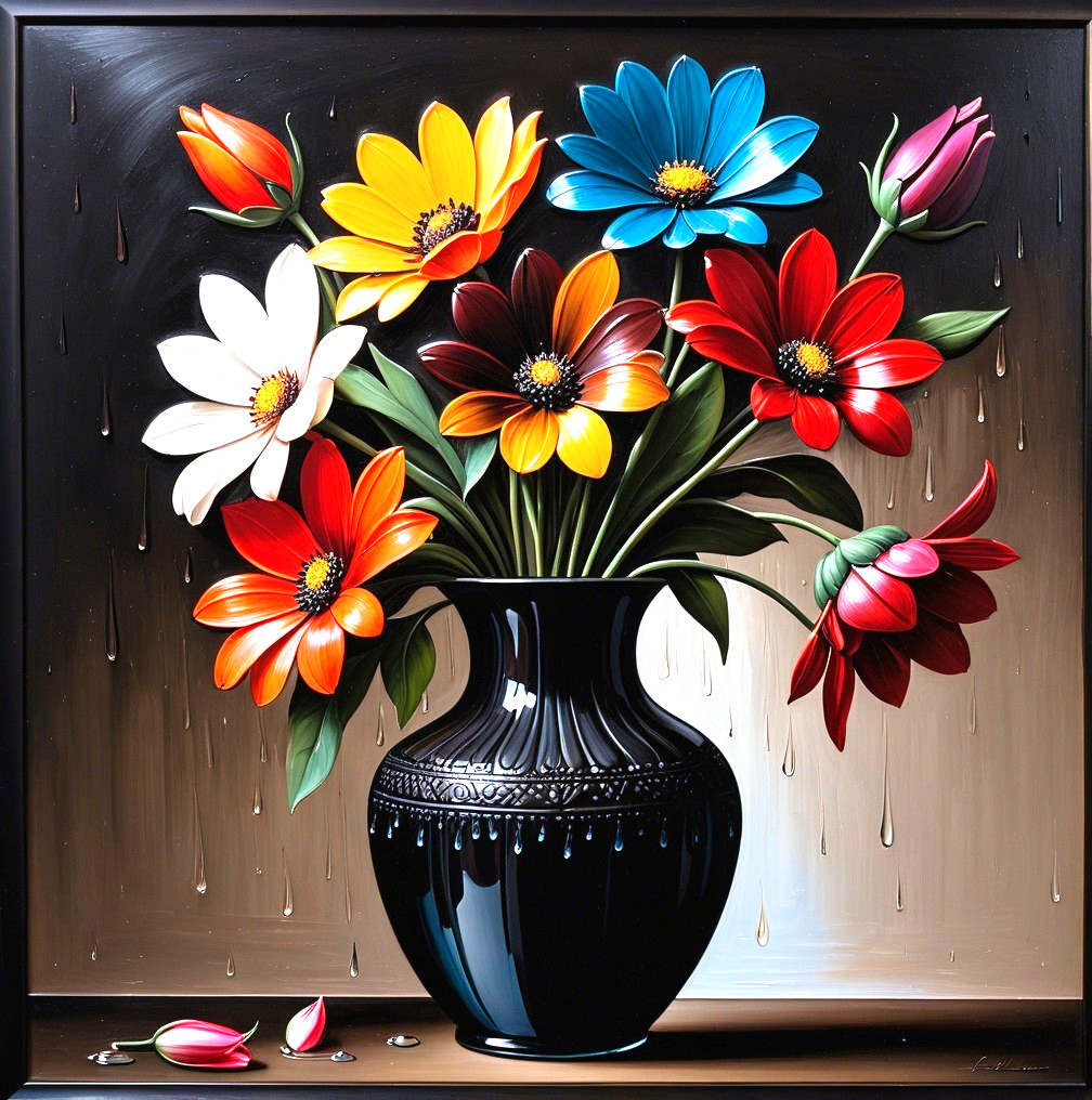 Vibrant Floral Still Life with Black Vase