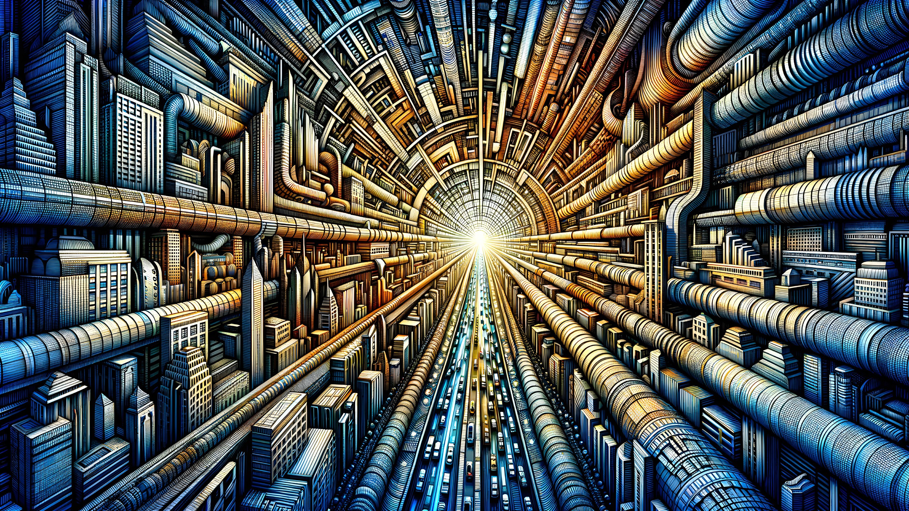 Oceanic Vortex: Blue & Beige Wave Tunnel