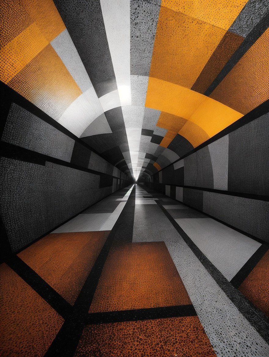 Reflective Tunnel: Abstract Monochrome Texture
