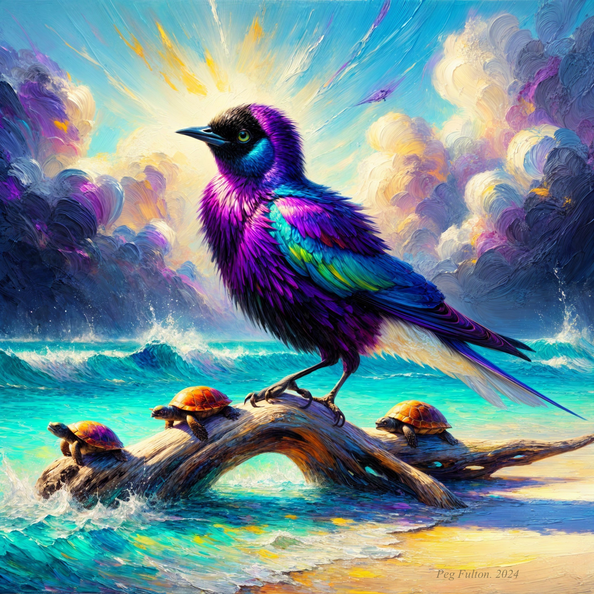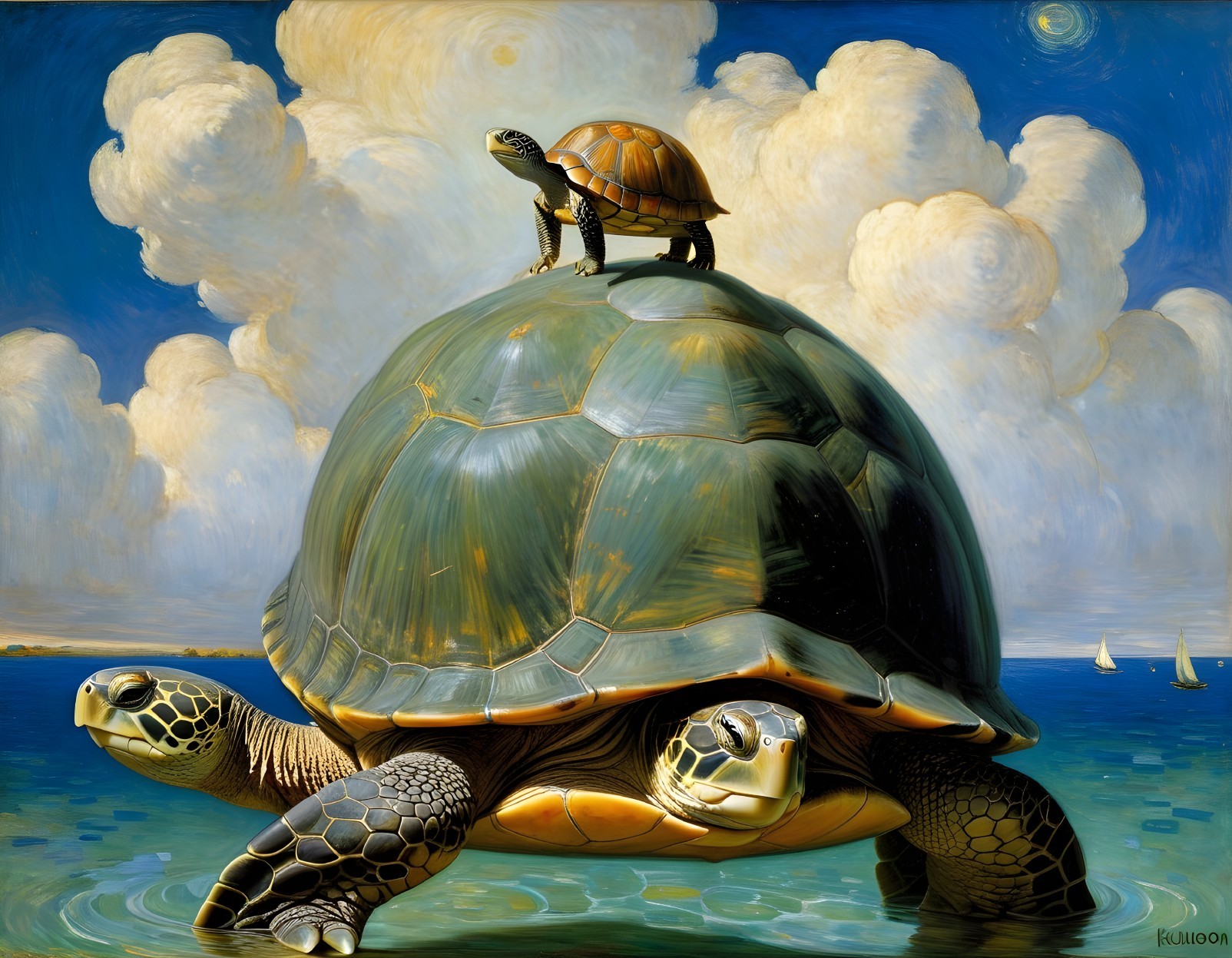 Turtles Stacking in Sunlit Blue Waters - September 16, 2024