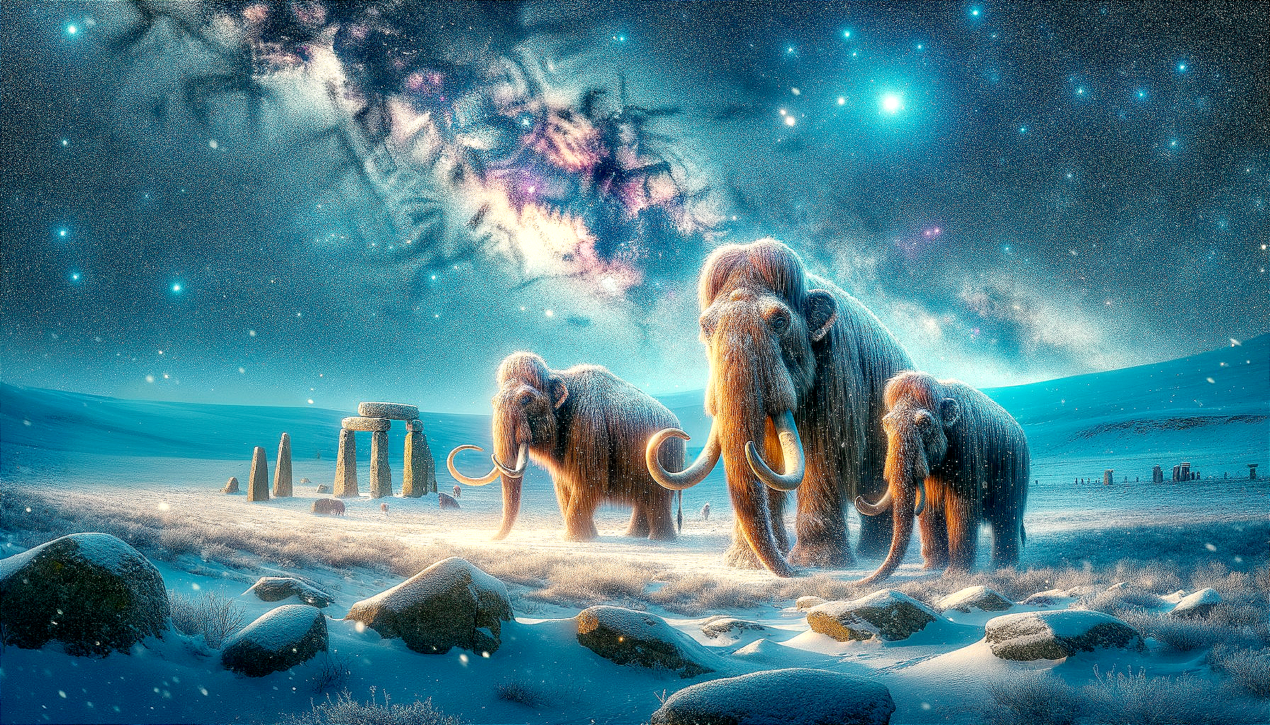 Majestic Mammoths: Nighttime Snowscape