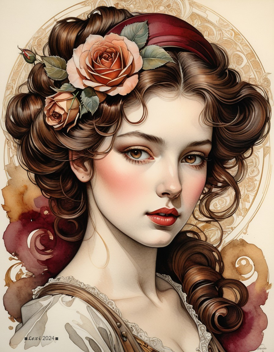Elegant Beauty with Roses in Vintage Style