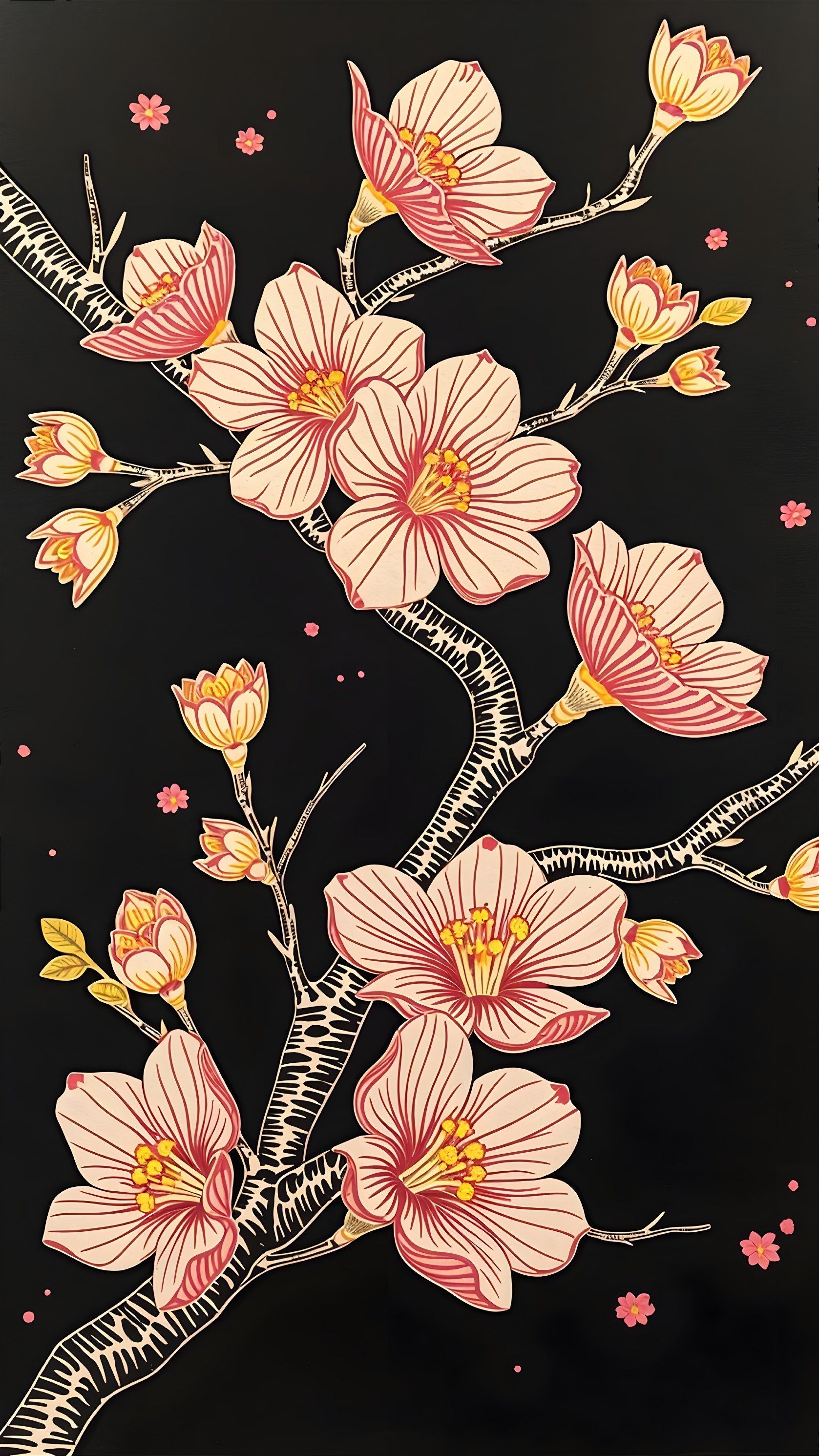 Elegant Cherry Blossom Linocut Artwork
