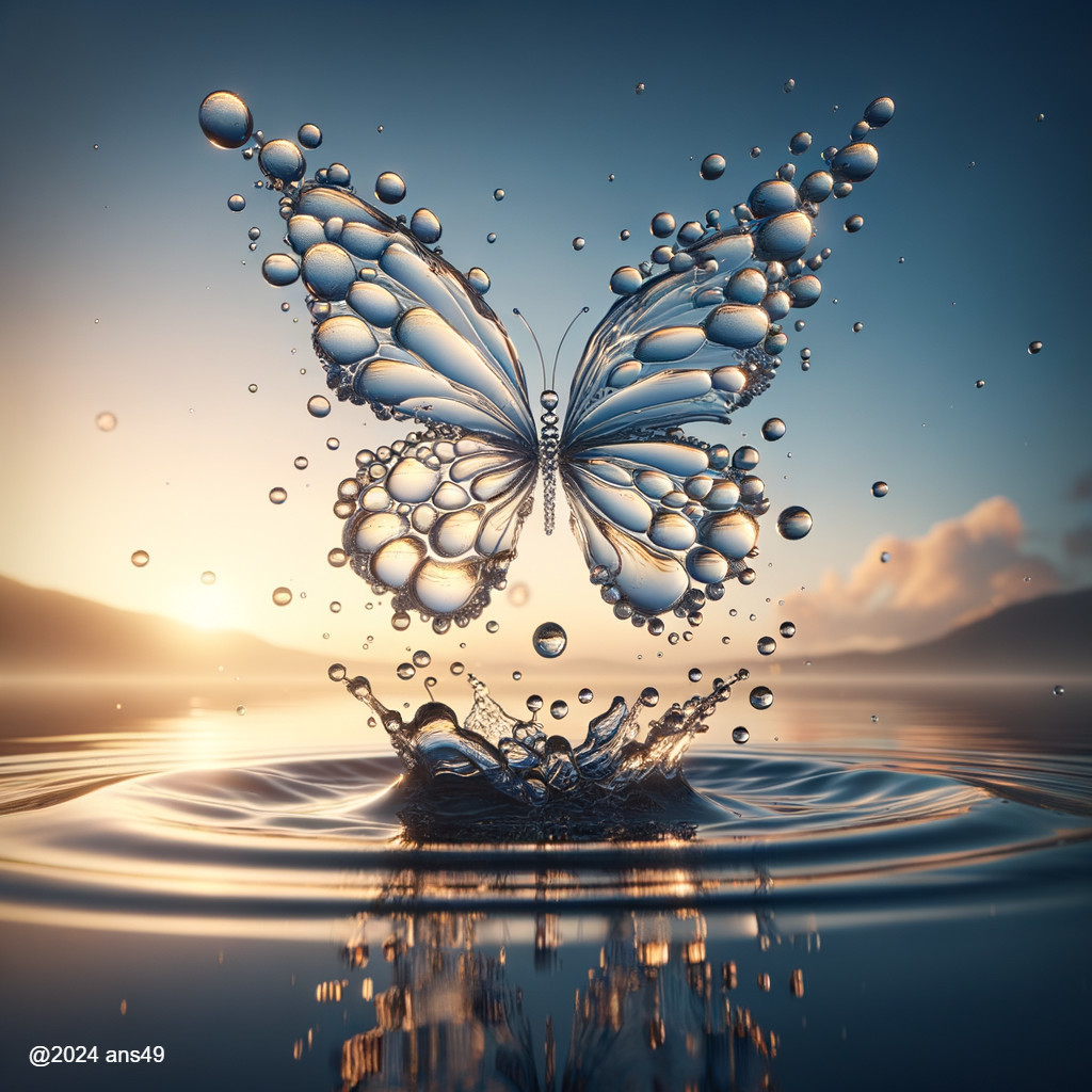 Twilight Reflections: Water Droplet Butterfly