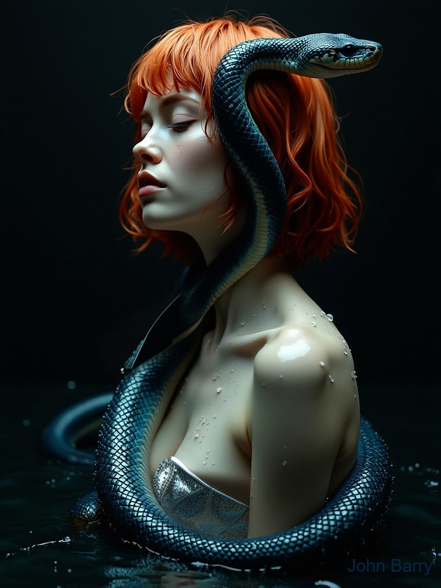 Enchanting Woman with Scaled Skin and Hat