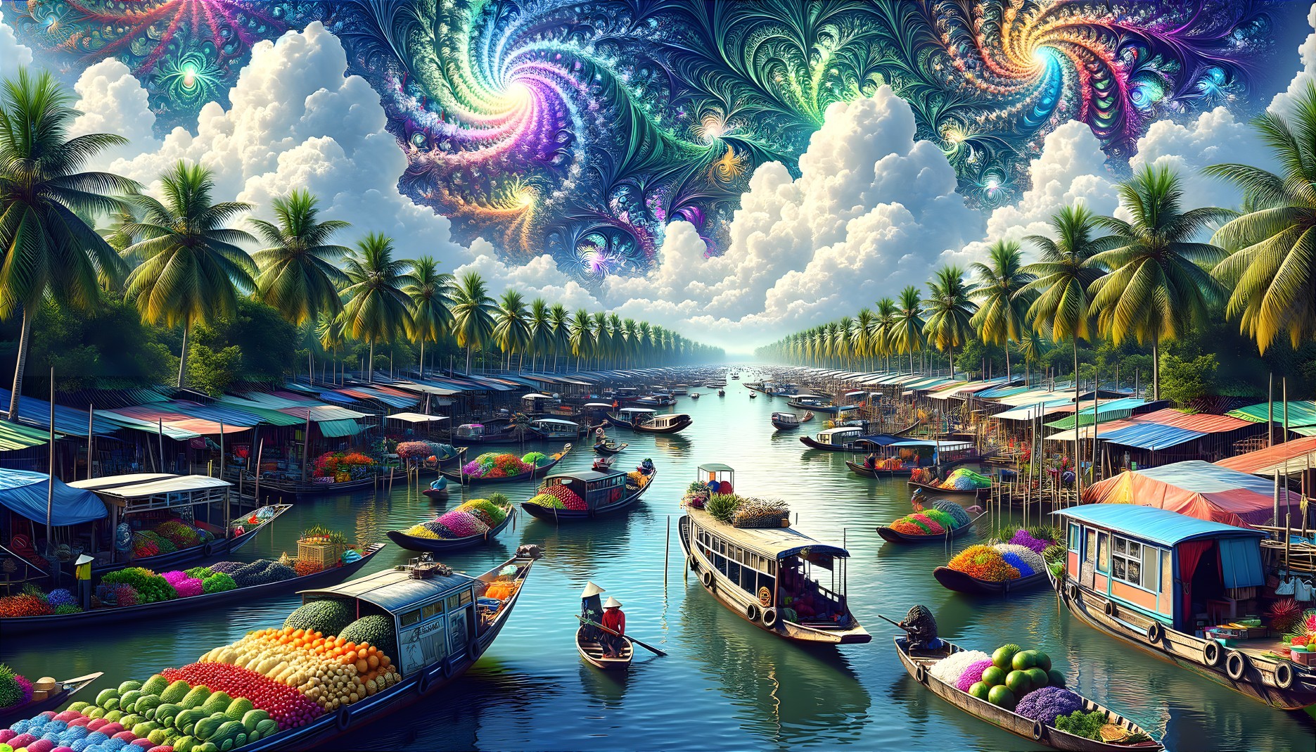 Vibrant Floating Market in Mekong Delta