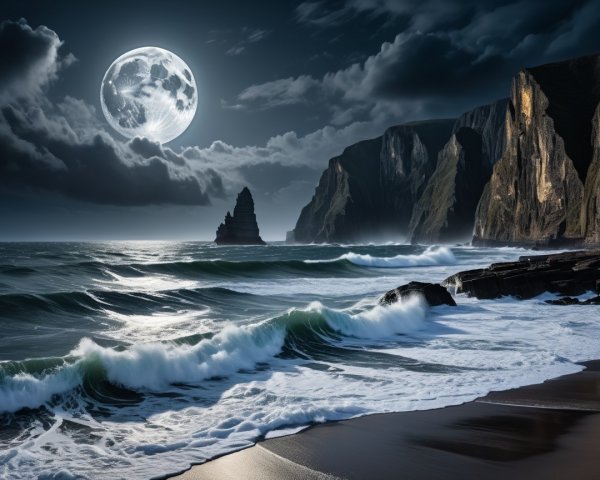 Mystical Cliffs Under a Luminescent Moon