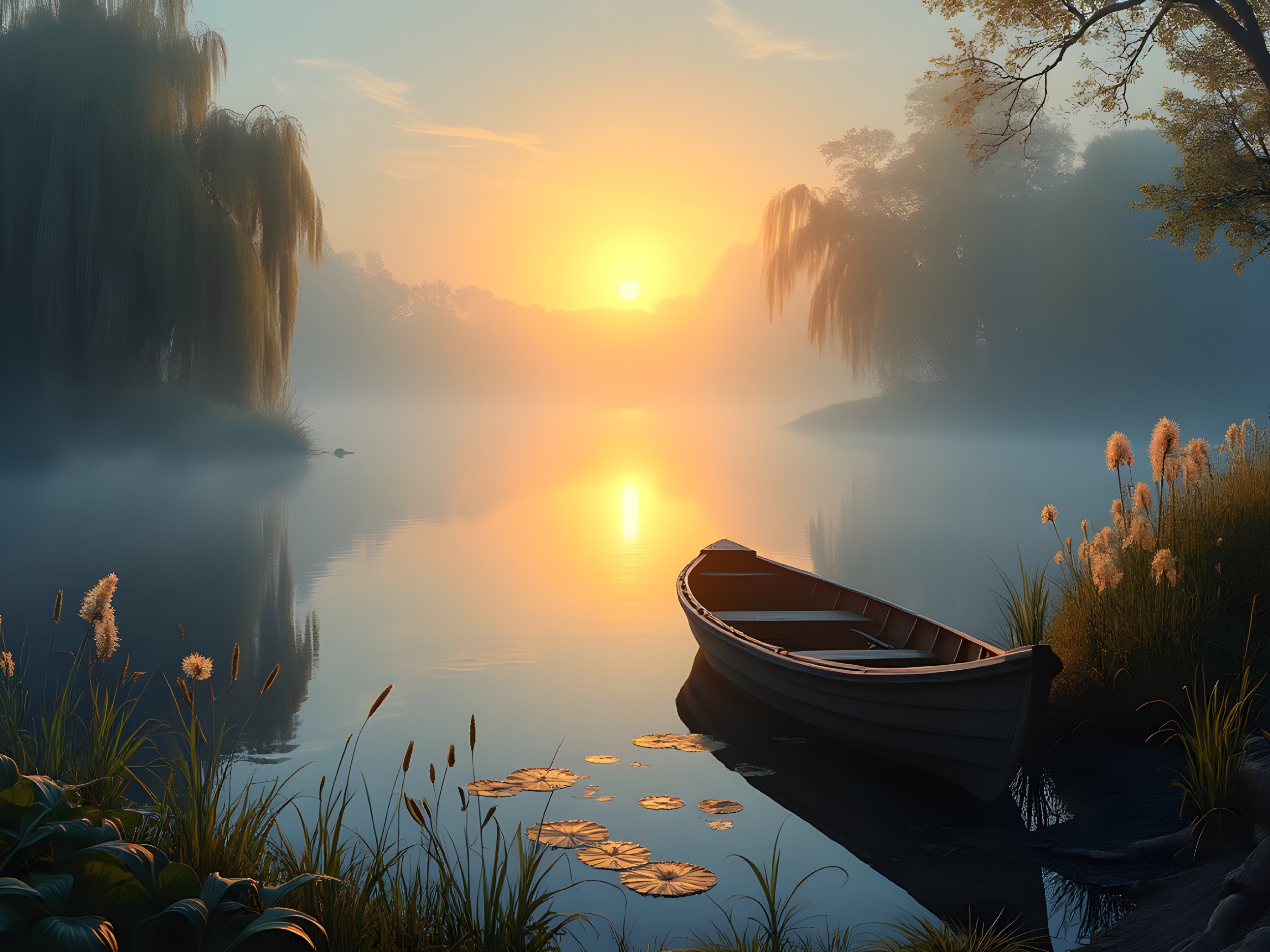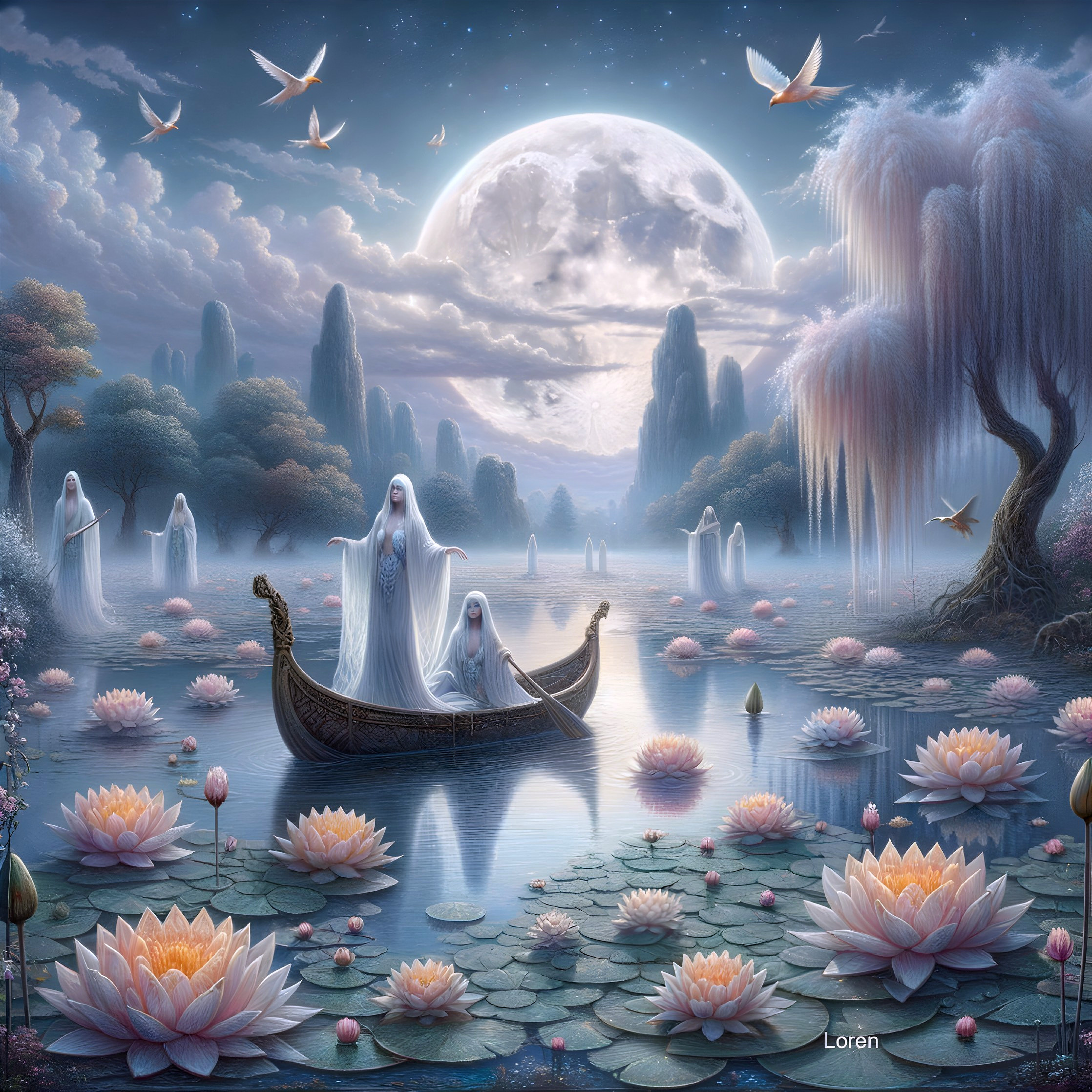 Moonlit Serenity: Ghostly Figures on Tranquil Waters