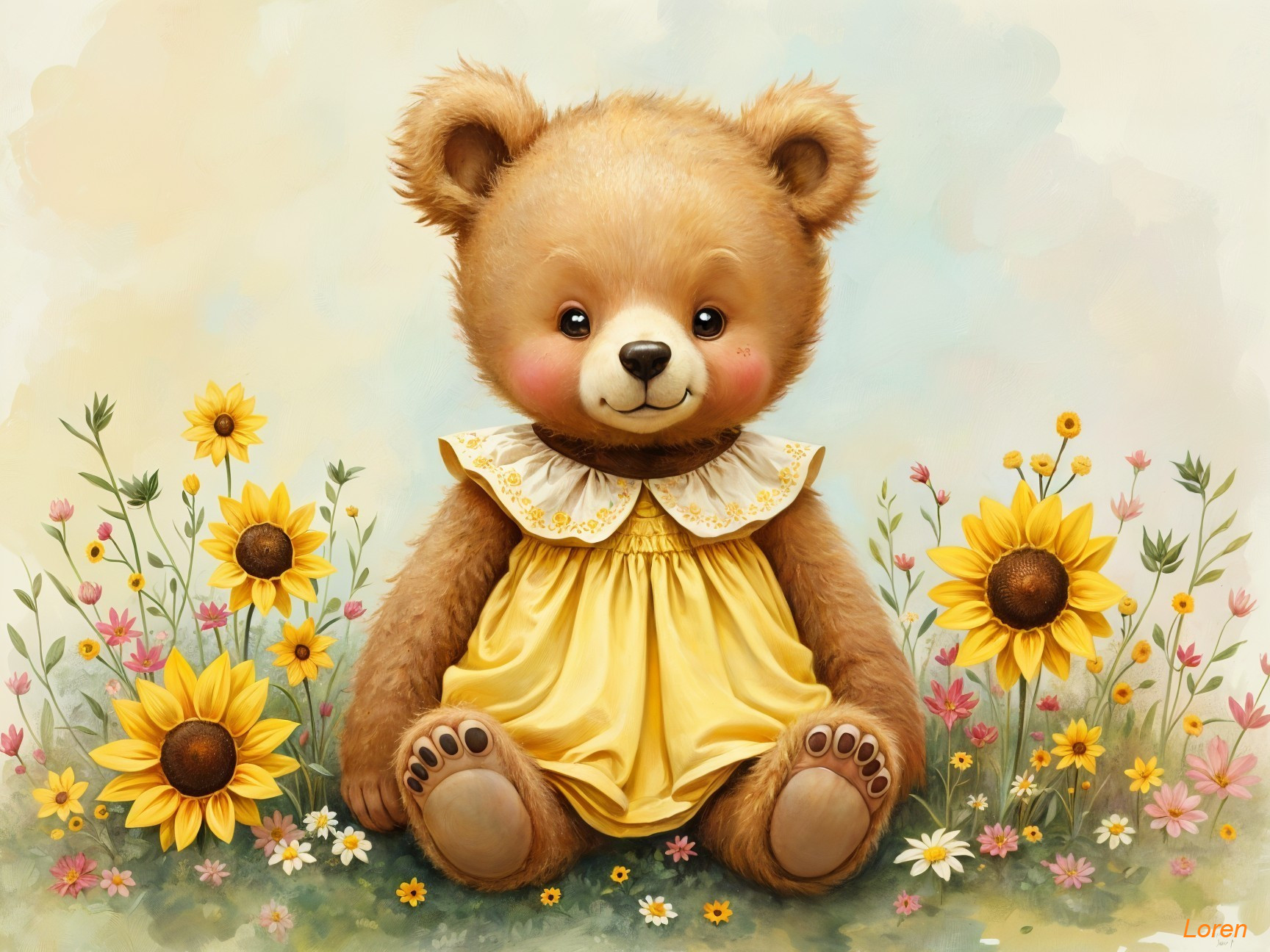 Whimsical Bear in a Floral Wonderland