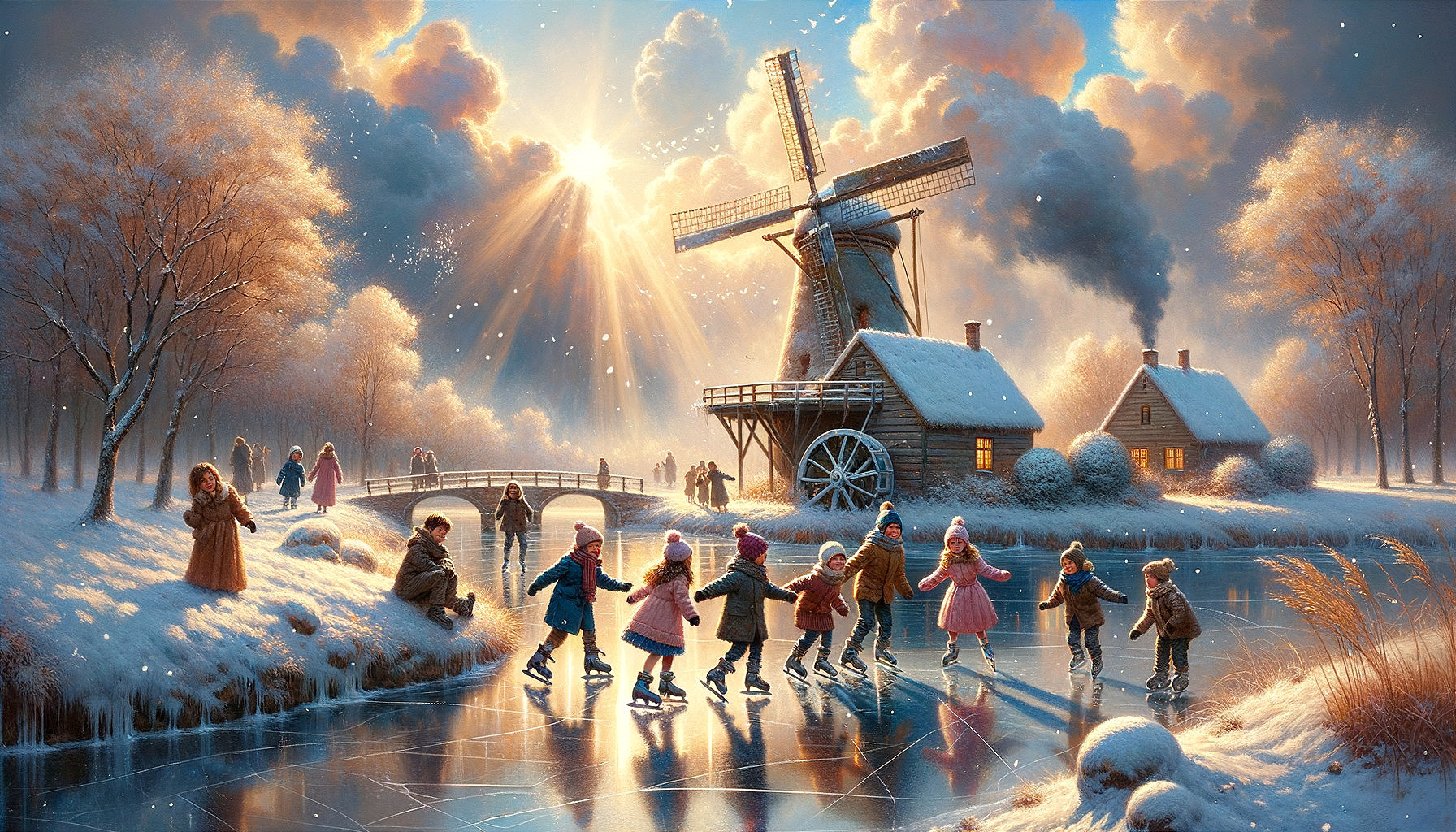 Joyful Winter Scene with Skating Children