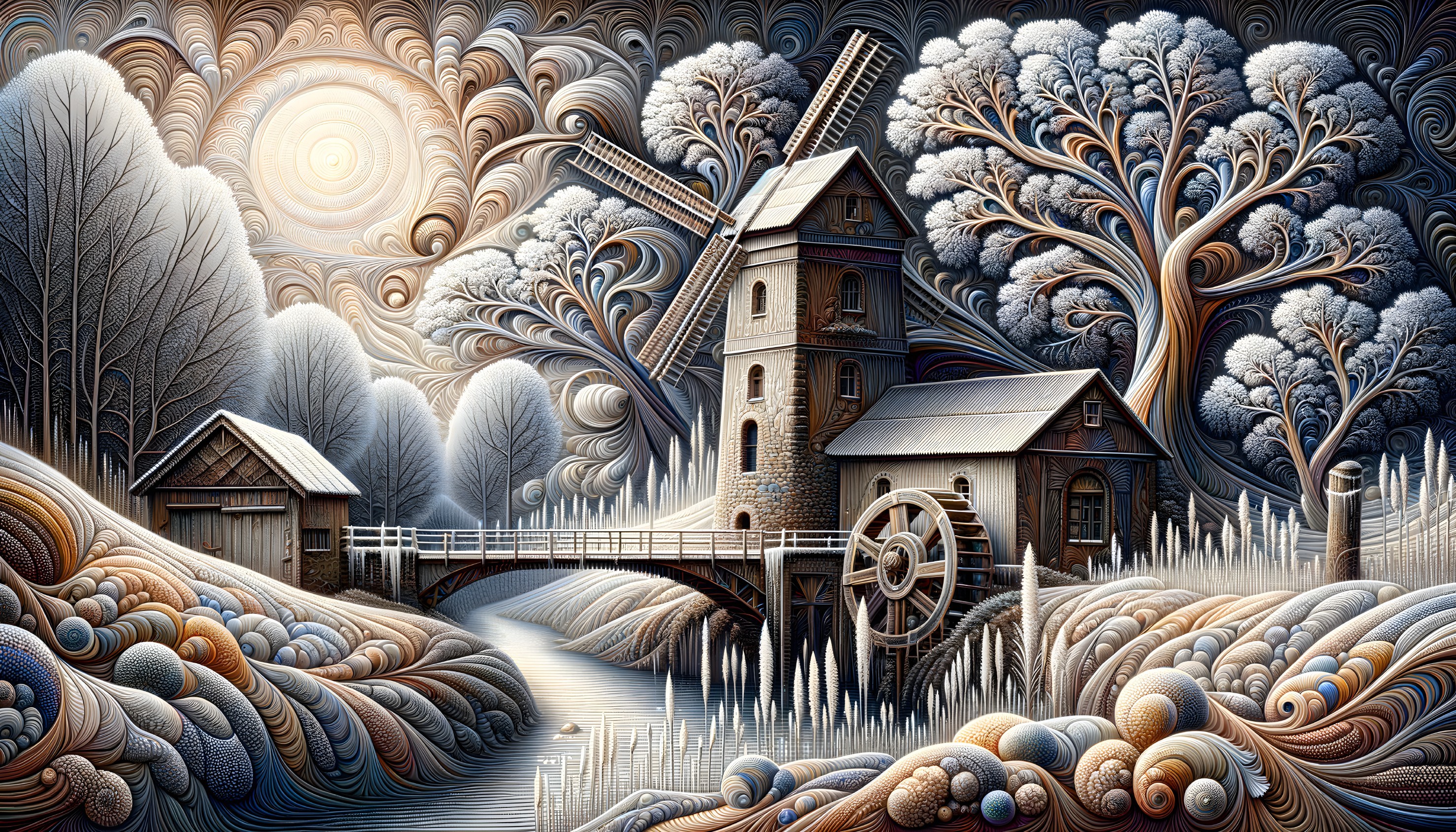 Winter Wonderland: Windmills at Sunset