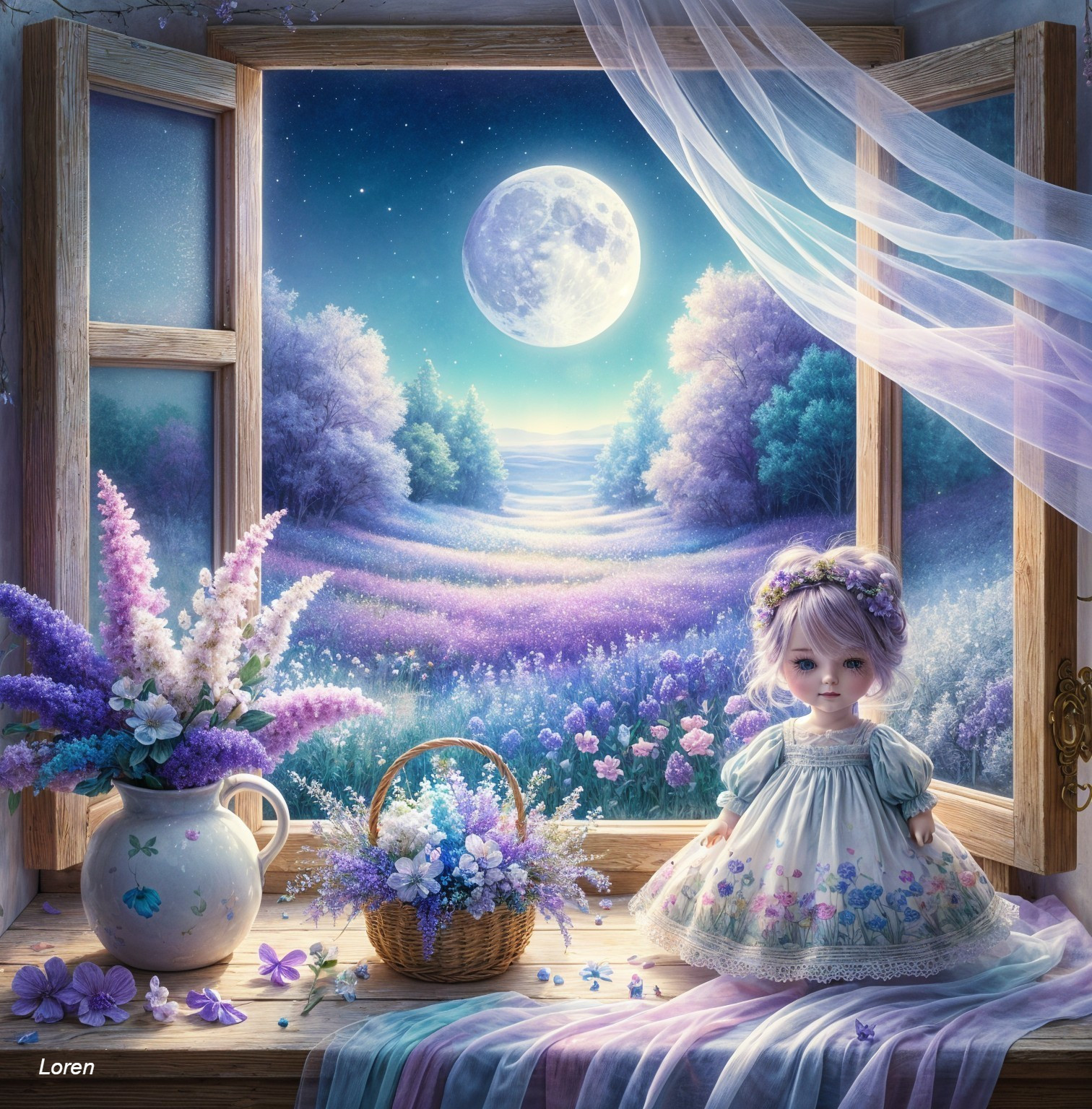 Serene Night by the Window with Roses