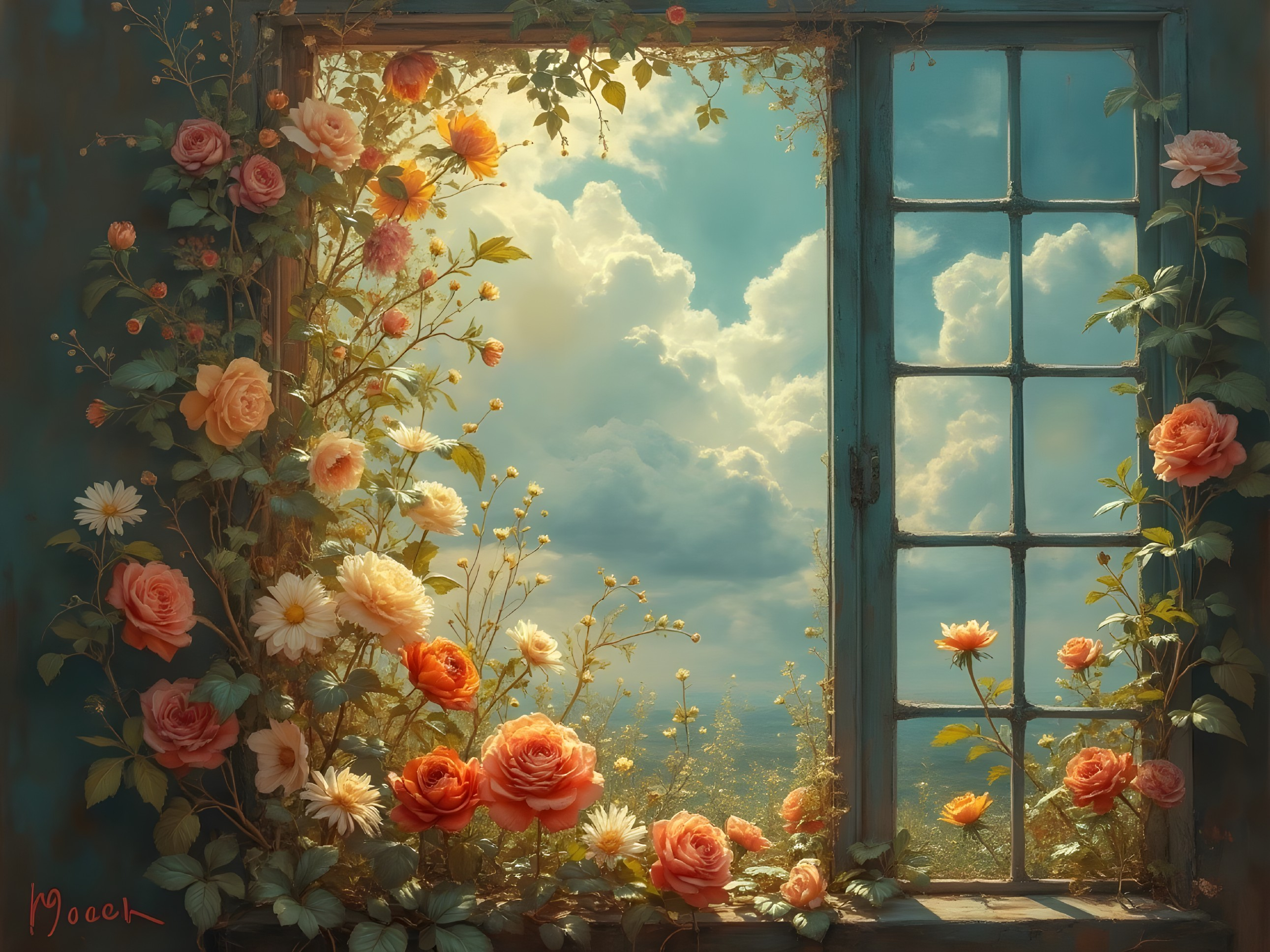 Charming Window View with Roses and Decor