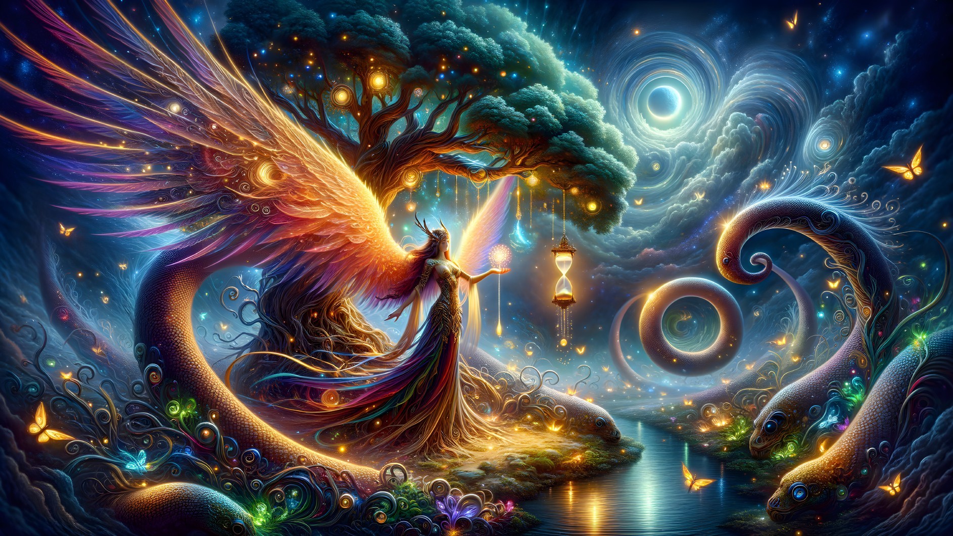 Mystical Winged Beauty Illustration
