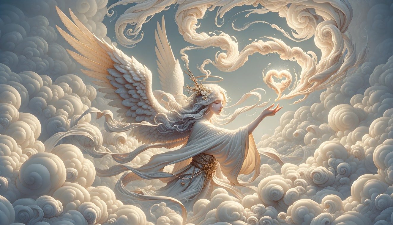 Mystical Encounter: Ship, Forest, and Winged Figure