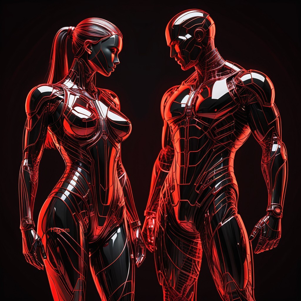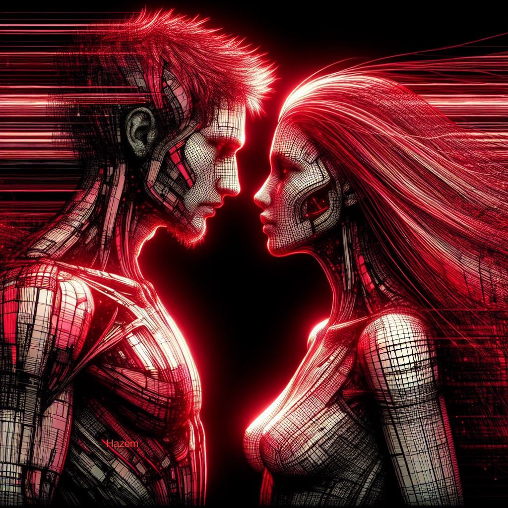 Cyberpunk Couple in Red Tones