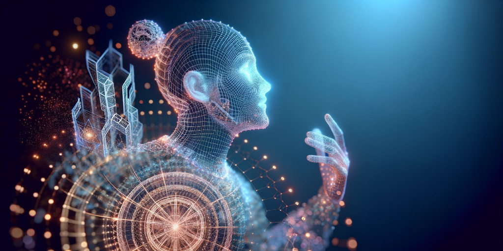 Mysterious Half-Human, Half-Wireframe Portrait