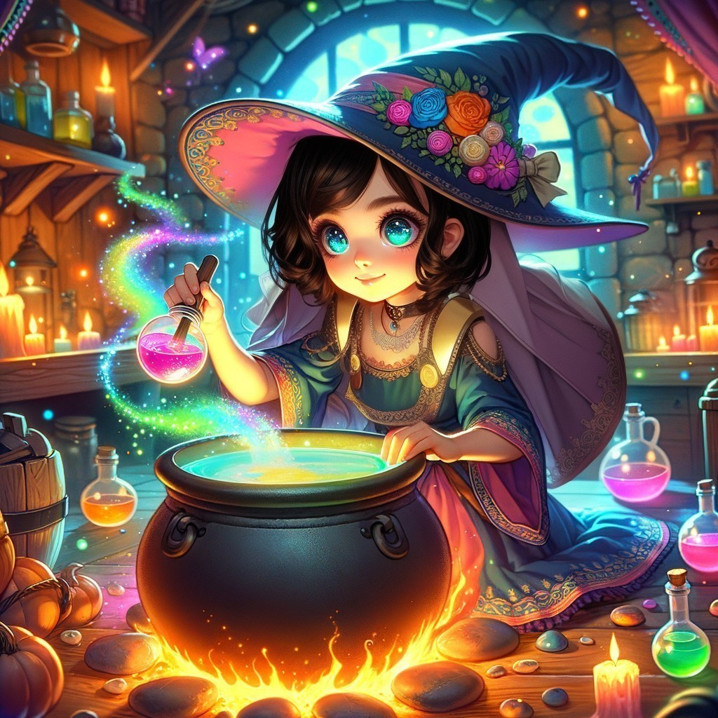Enchanting Potion Brewing in Moonlight