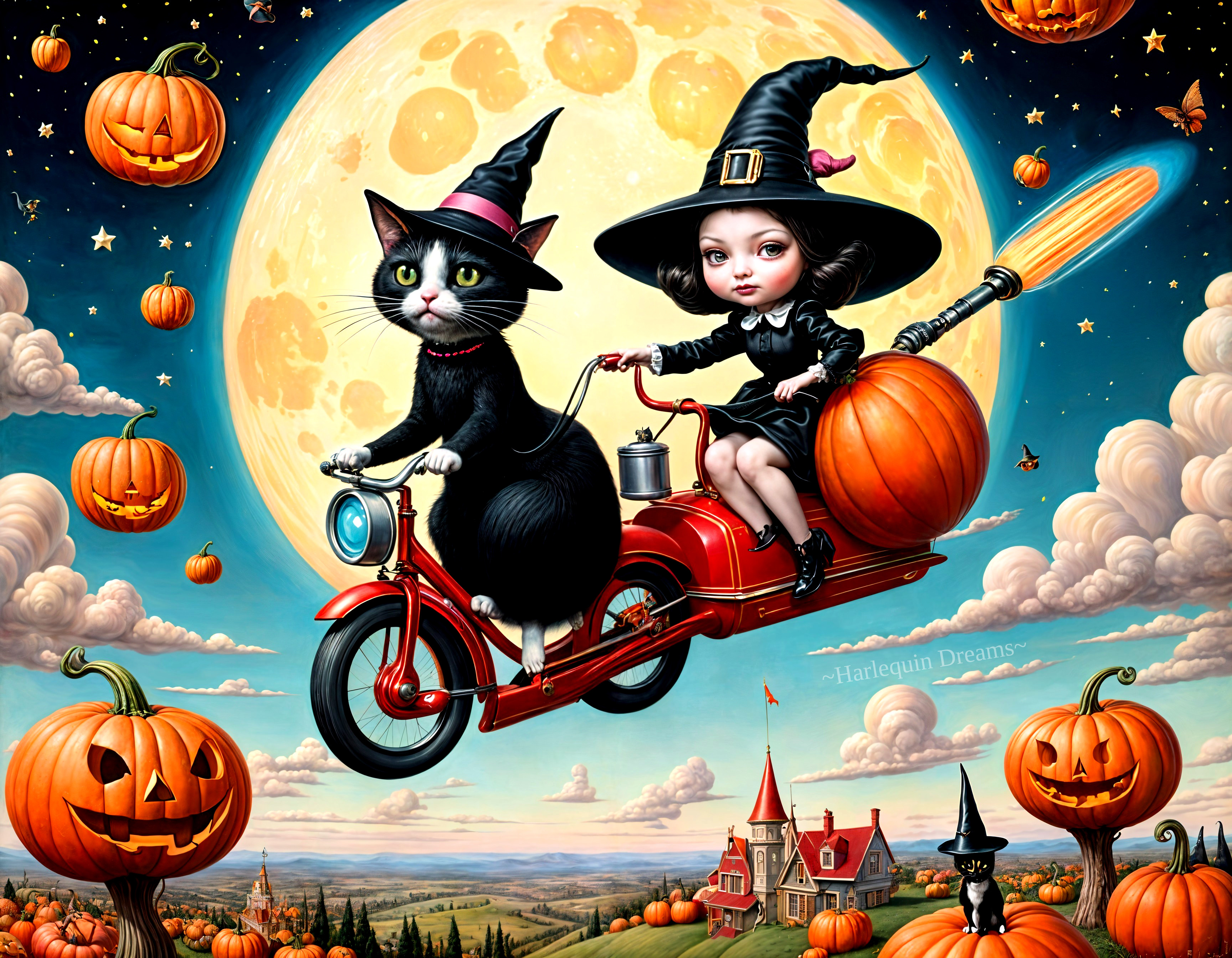 Autumn Magic: A Girl, Cat, and Pumpkins