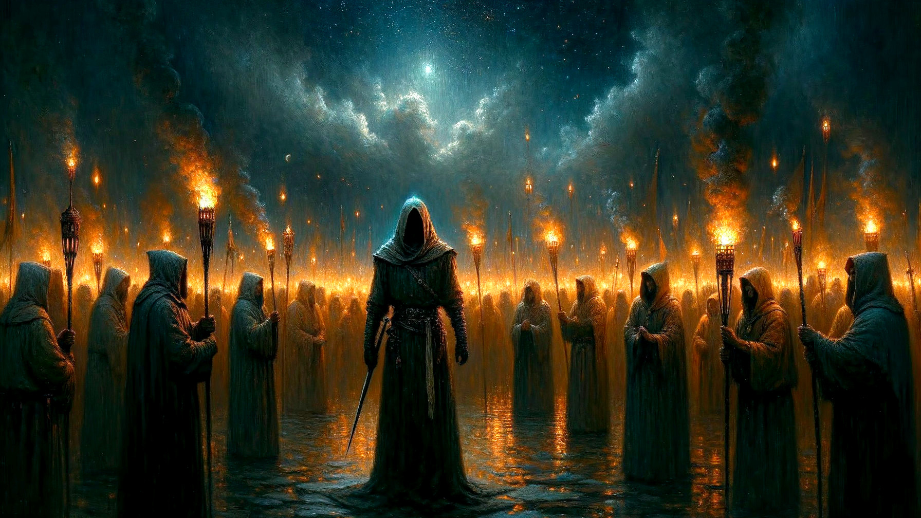 Torches blazed and sacred chants were praised, As they start to cry, hands held to the sky ...