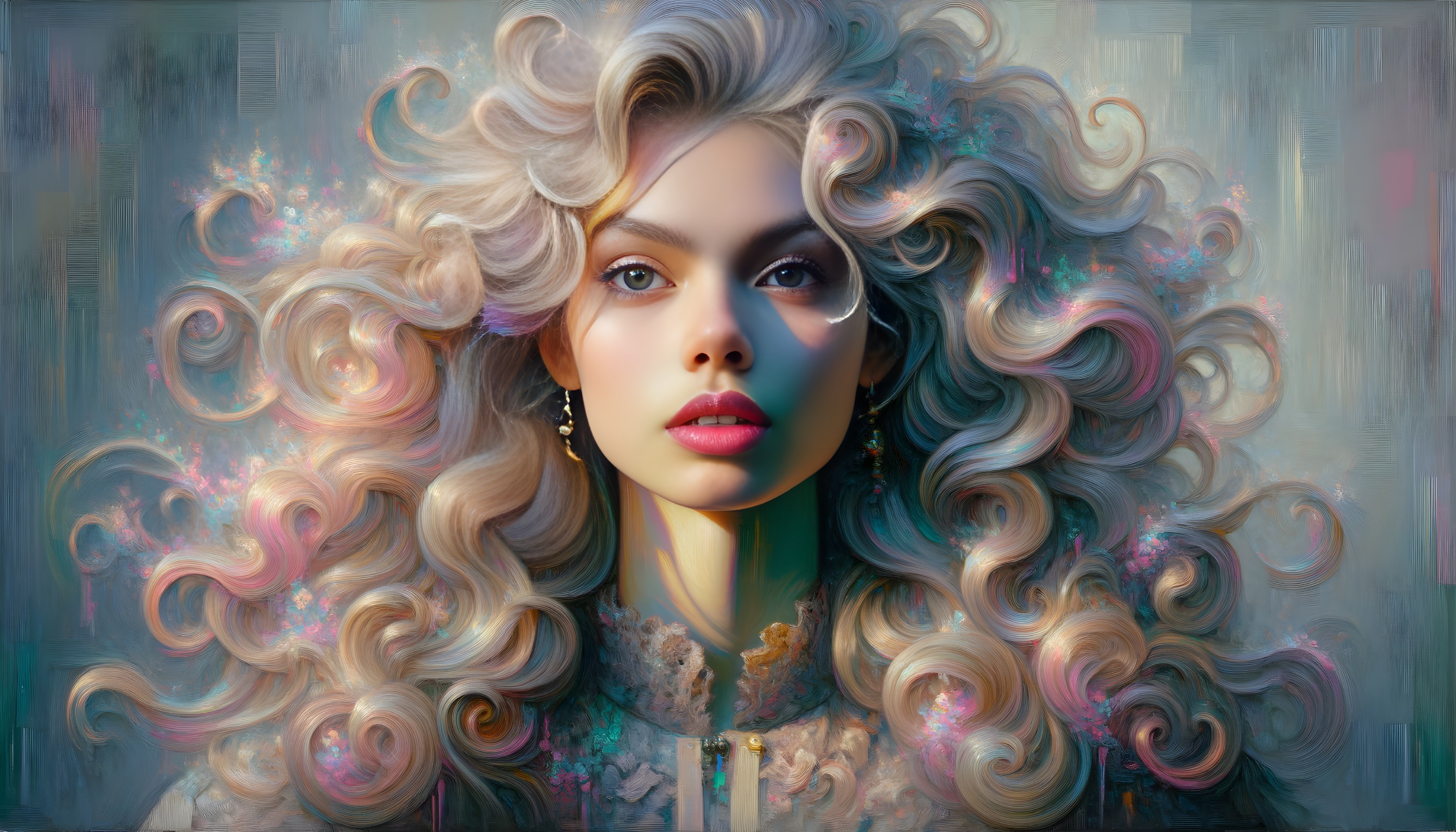 Chromatic Harmony: Y2K Portrait in Pastel Goth Style